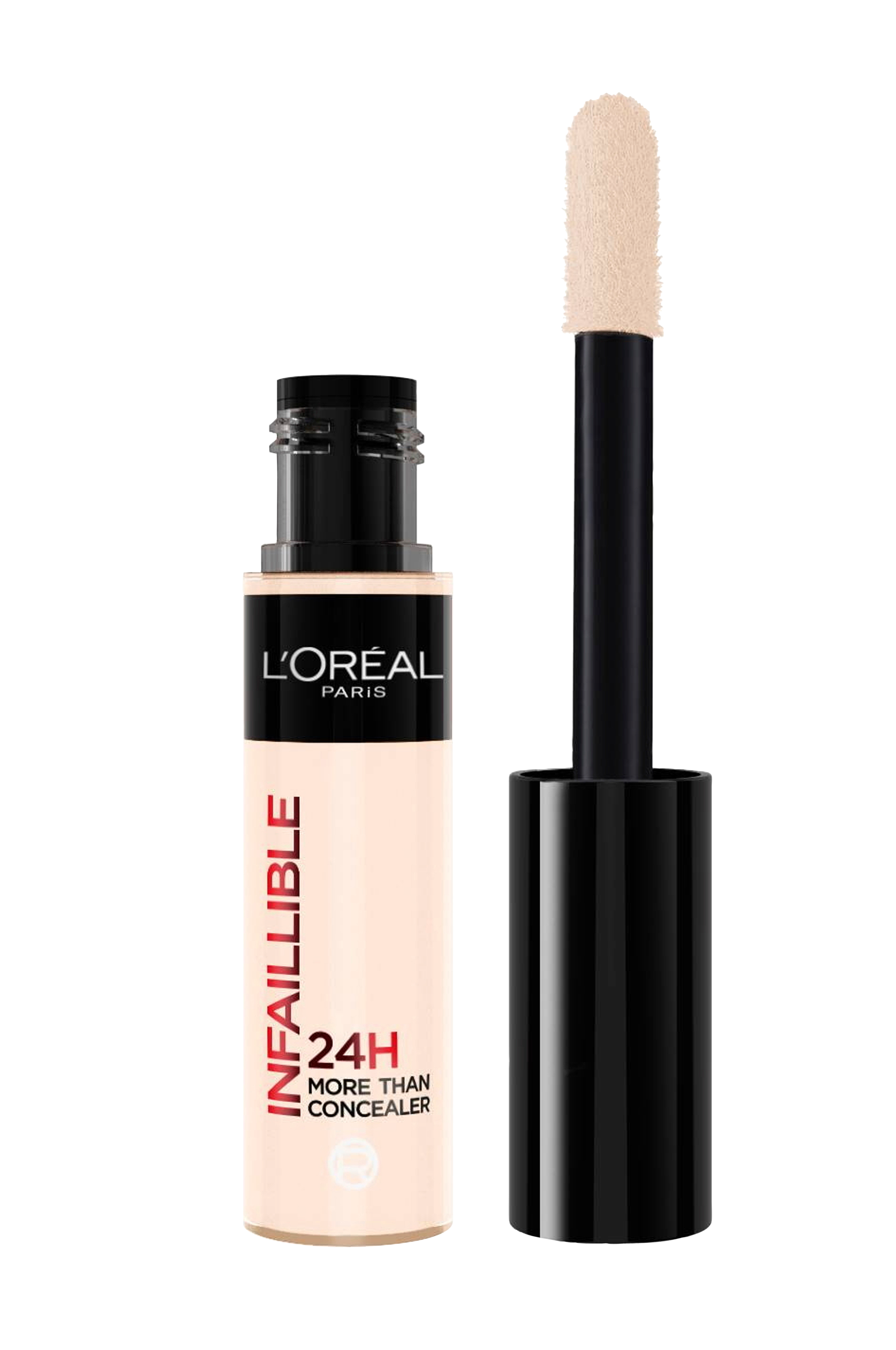 L'Oréal Paris Infaillible More Than a Concealer er en heldækkende concealer, som holder i 24 timer og føles let. Formlen har et højt indhold af pigmenter for maksimal dækkeevne og en blanding af olier for en behagelig og nem påføring samt fugt. Bliver siddende hele dagen uden at klumpe eller sætte sig i fine linjer. Supersize applikator gør det nemt at påføre concealeren på både målrettede eller større områder.