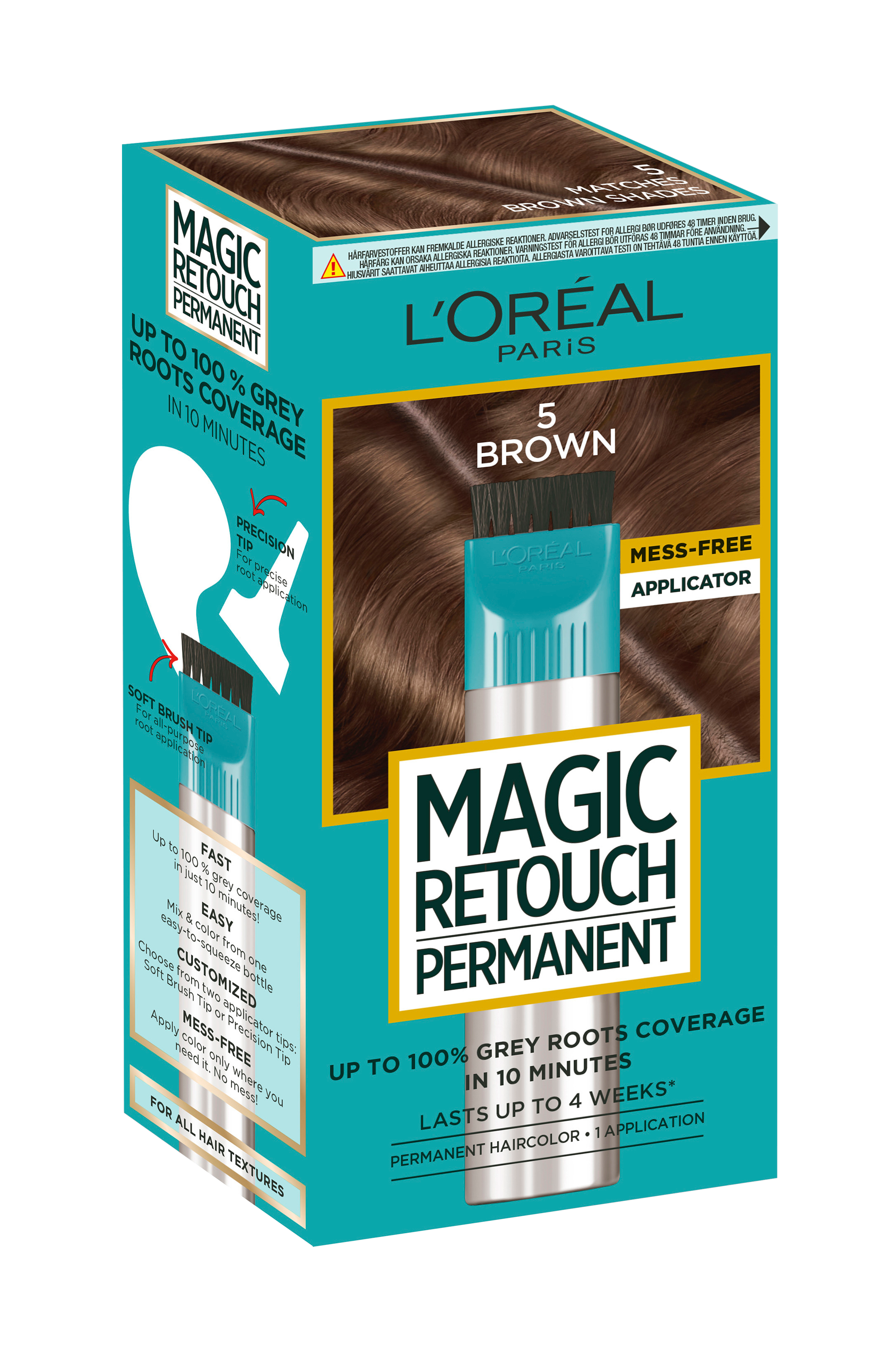 Magic Retouch permanent hårfarve til udvoksninger giver et quick-fix mellem hårfarvninger. Formlen matcher din hårfarve og giver et smukt og jævnt resultat med op til 100% dækning af grå hår - på kun 10 minutter! Den smarte applikator gør det nemt og hurtigt at skjule dine udvoksninger.