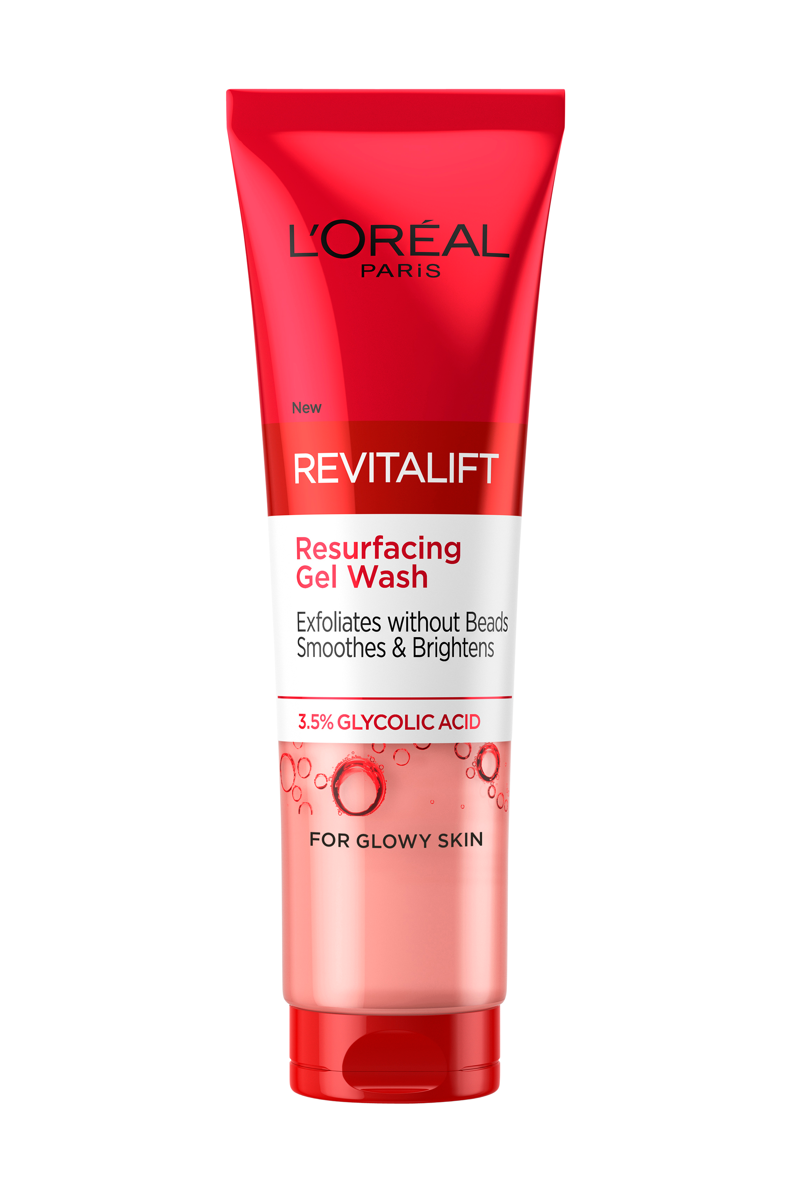 L'Oréal Paris Revitalift Resurfacing Gel Wash er en eksfolierende rensegel med udglattende effekt. Formlen indeholder glykolsyre som er en kraftfuld ingrediens inden for hudpleje, kendt for effektivt at eksfoliere og fjerne døde hudceller uden brug af eksfolierende partikler.