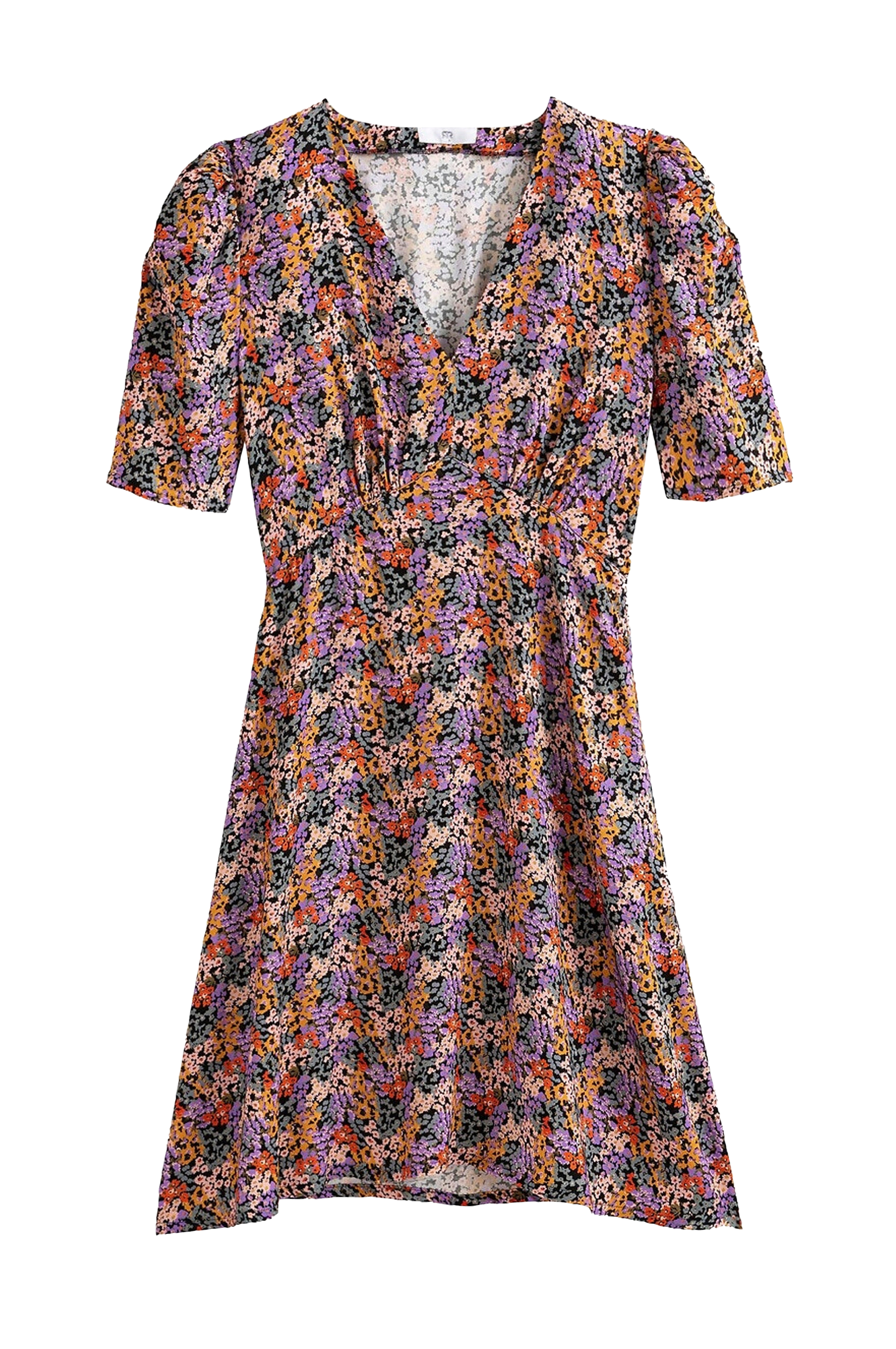 Blomstret kjole med feminin pasform og flatterende V-udskæring. Detaljer - A-formet model - Kort model - Kort ærme - V-udskæring - Printet mønster Materiale og vaskeanvisning - 100% viskose - Finvask 30° - Stryges ved lav temperatur/tåler ikke blegemiddel - Tåler ikke tørretumbling - Tåler ikke kemisk rens Yderligere information - Længde 90 cm i str. 38