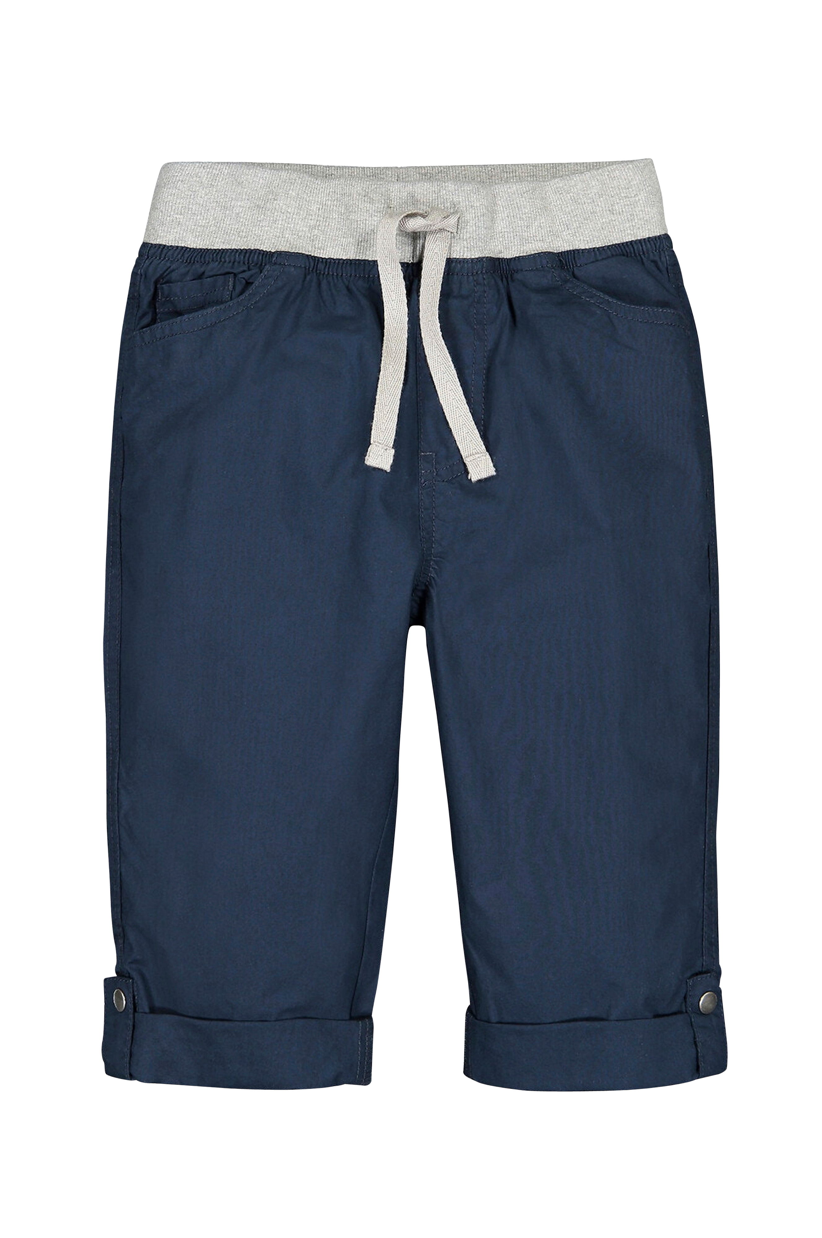 Detaljer - Kort model - Normalhøj talje - Elastik i taljen Materiale og vaskeanvisning - 100% bomuld - Maskinvask 40° - Stryges ved middeltemperatur/tåler ikke blegemiddel - Tørretumbling ved lav temperatur - Tåler ikke kemisk rens - Kontrastfarvet linning i rib med bindebånd - 2 lommer foran og 1 møntlomme - 2 baglommer med klap med velcrolukning - Opslag i benkant med knaptamp med trykknap