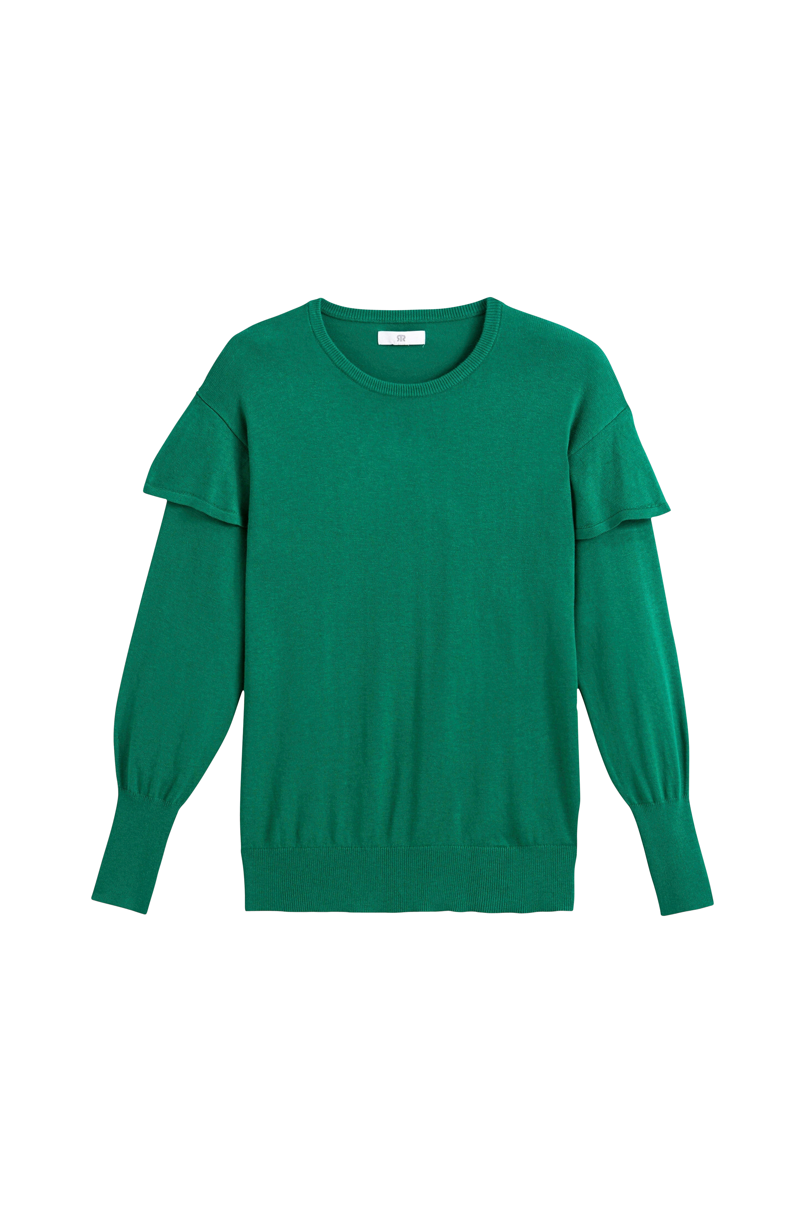 Skøn og blød trøje med smuk detalje på ærmerne. Alsidig model med ret tætsiddende pasform.