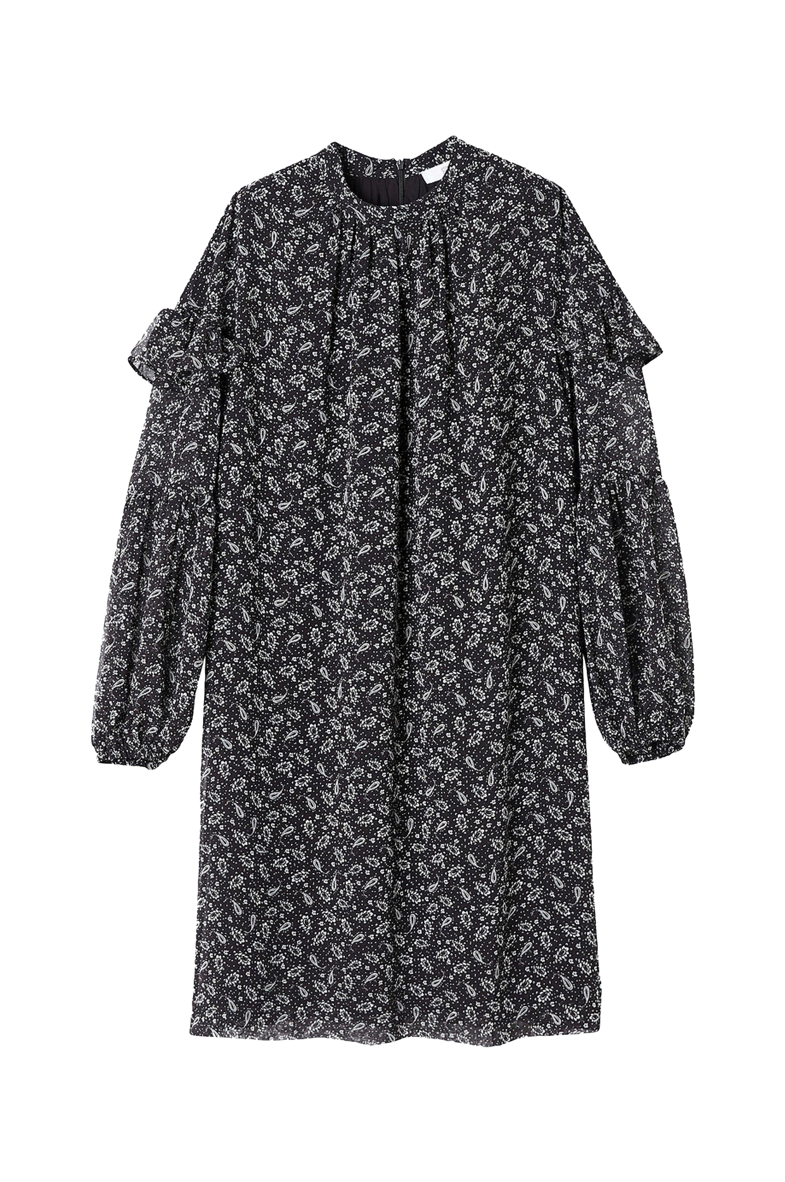 A-formet kjole i bohemestil med flæser og blomstermønster på sort bund. Alsidig model i flatterende længde, med langt ærme. Detaljer - Lige model - Kort model - Langt ærme - Rund hals - Printet mønster Materiale og vaskeanvisning - Primært materiale: 100% polyester - Øvrigt materiale: 100% polyester - Finvask 30° - Stryges ved lav temperatur/tåler ikke blegemiddel - Tåler ikke tørretumbling - Tåler ikke kemisk rens Yderligere information - Lynlås bagpå - Længde 90 cm i str. 38