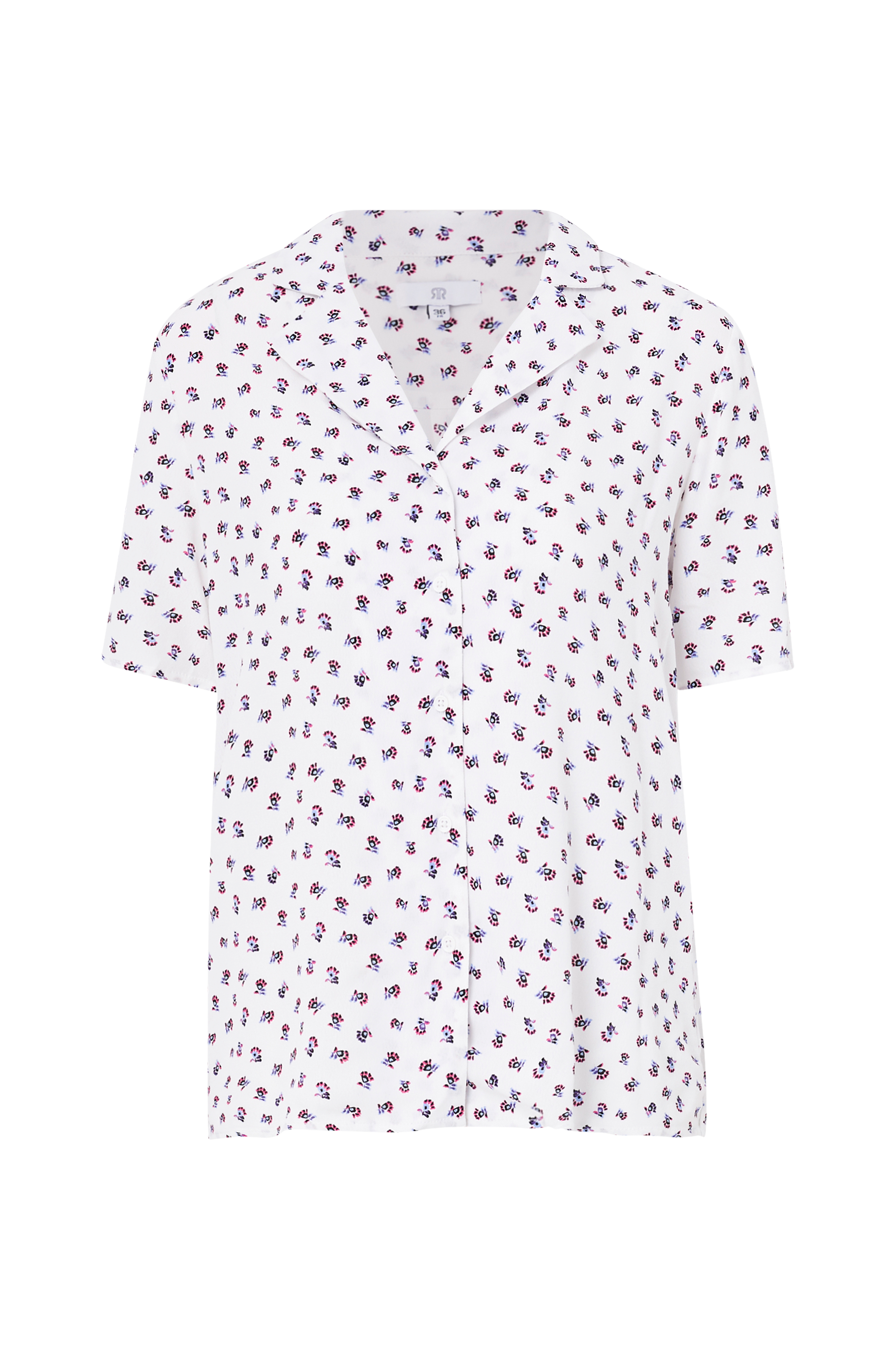 Bluse i blød viskose. Pyjamasinspireret model i vintagestil med retromønster. Detaljer - Kort ærme - Lige model - Krave - Blomstermønster Materiale og vaskeanvisning - 100% viskose - Maskinvask 30° - Stryges ved lav temperatur/tåler ikke blegemiddel - Tåler ikke tørretumbling - Tåler ikke kemisk rens Yderligere information - Længde 65 cm i str. 38