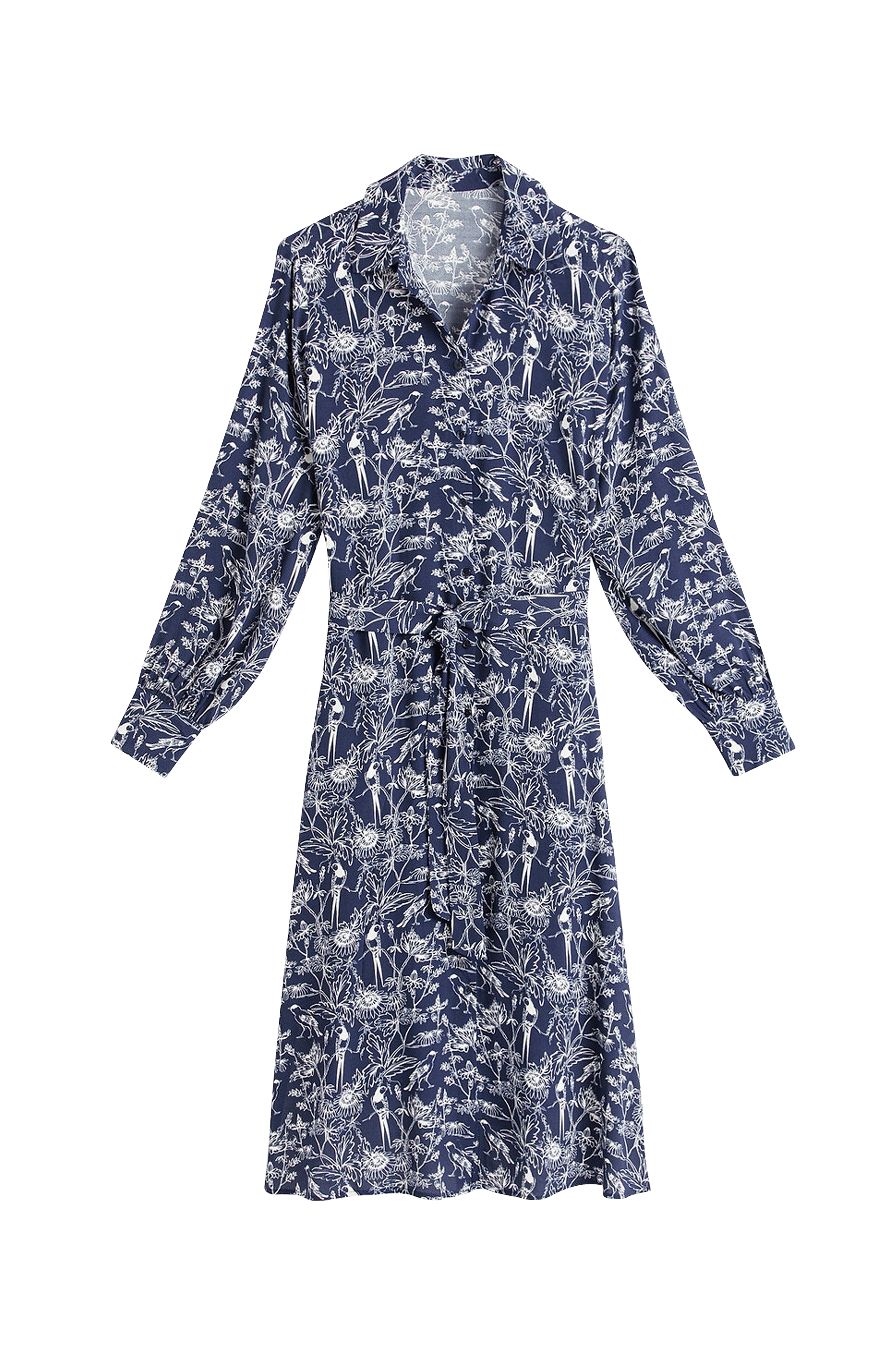 Skjortekjole i klassisk stil med originalt mønster. Trendy model med flatterende pasform og markeret talje, i blødt, smidigt materiale.