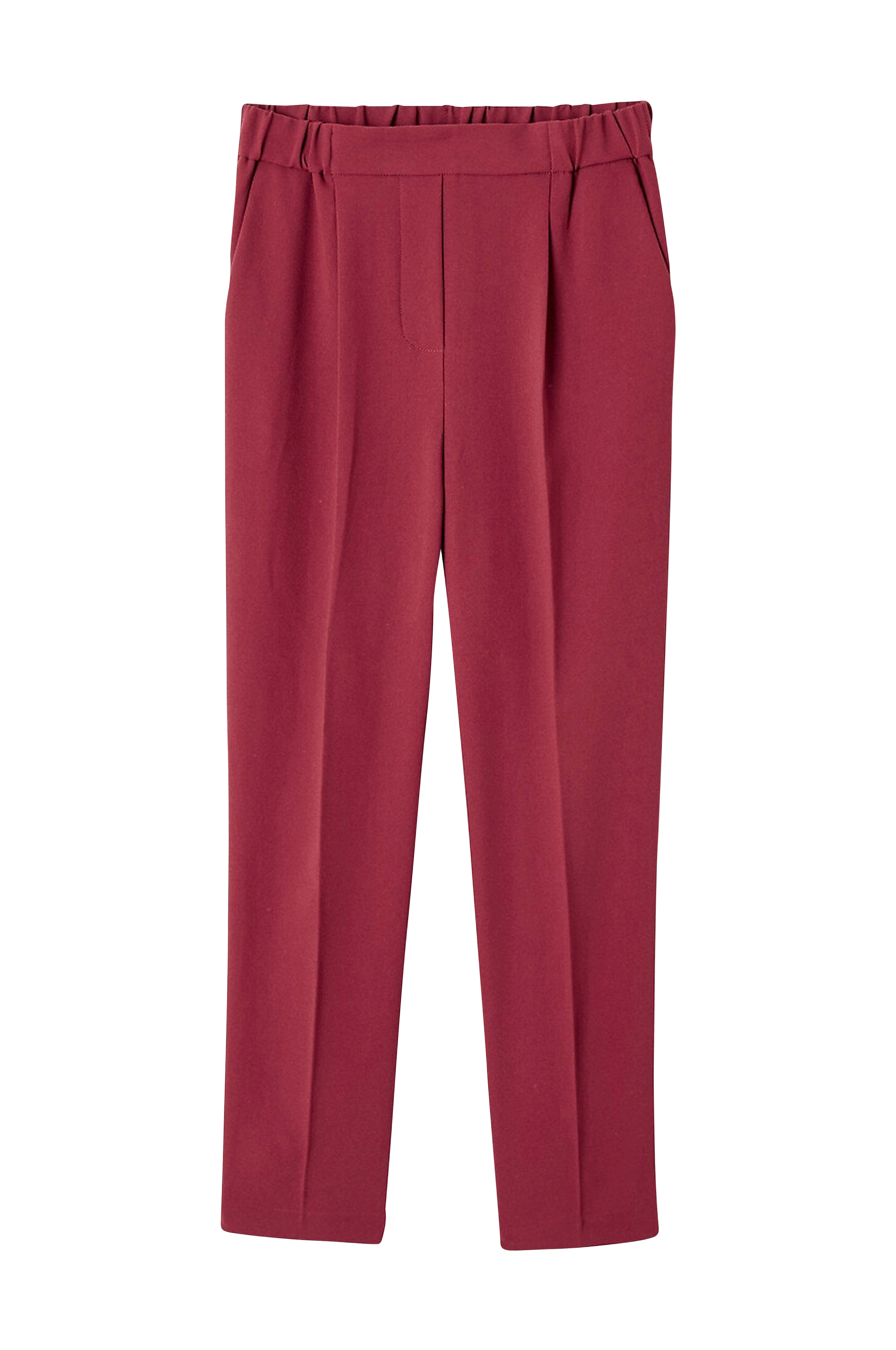 Behagelig buks i blød crepe. Smal model som forlænger silhuetten. Løst snit med elastik i taljen.