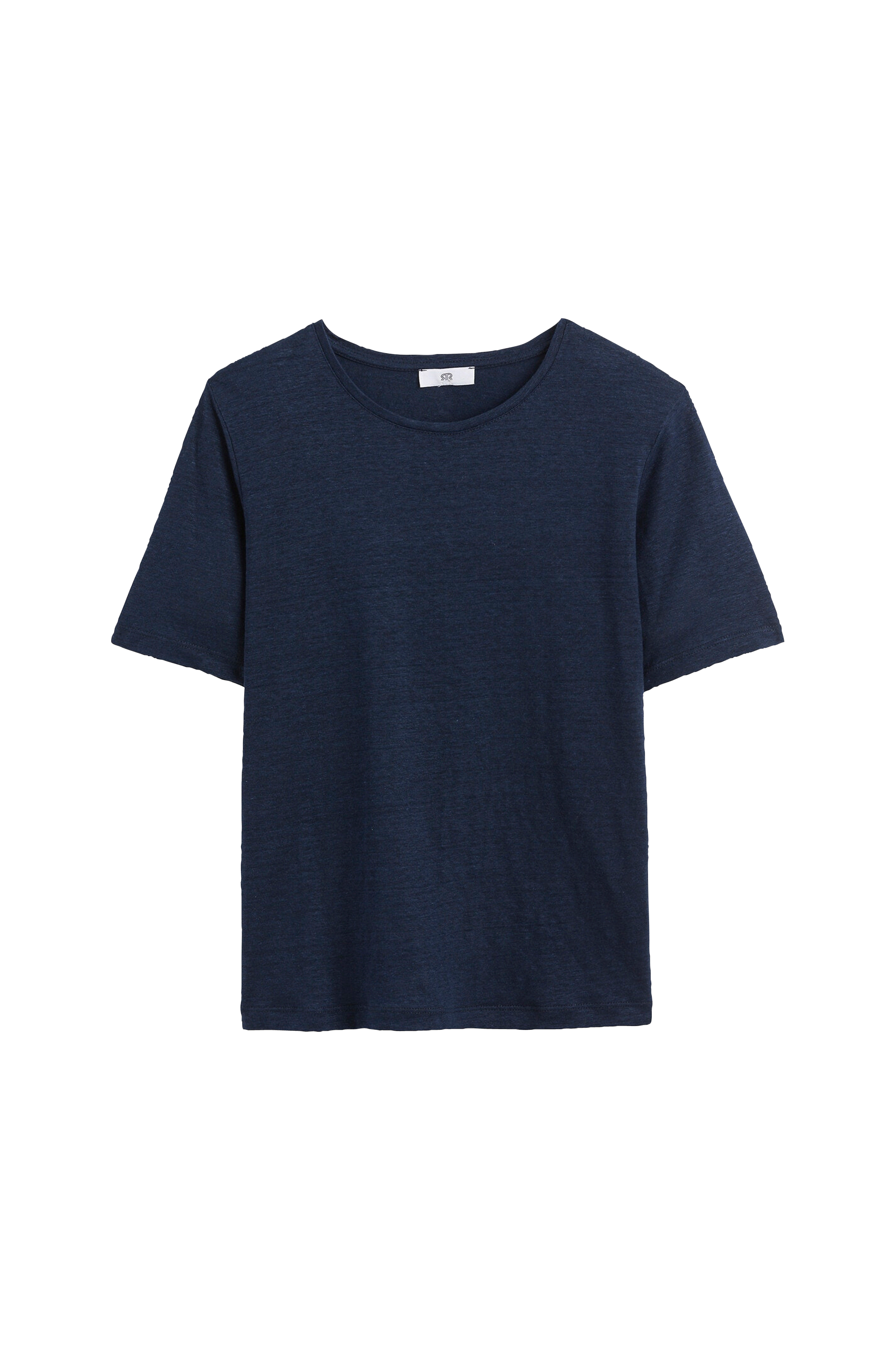 Top med rund hals i hørlærred, et køligt og behageligt naturmateriale, der er perfekt om sommeren. Basismodel i hørmateriale, i fine farver.