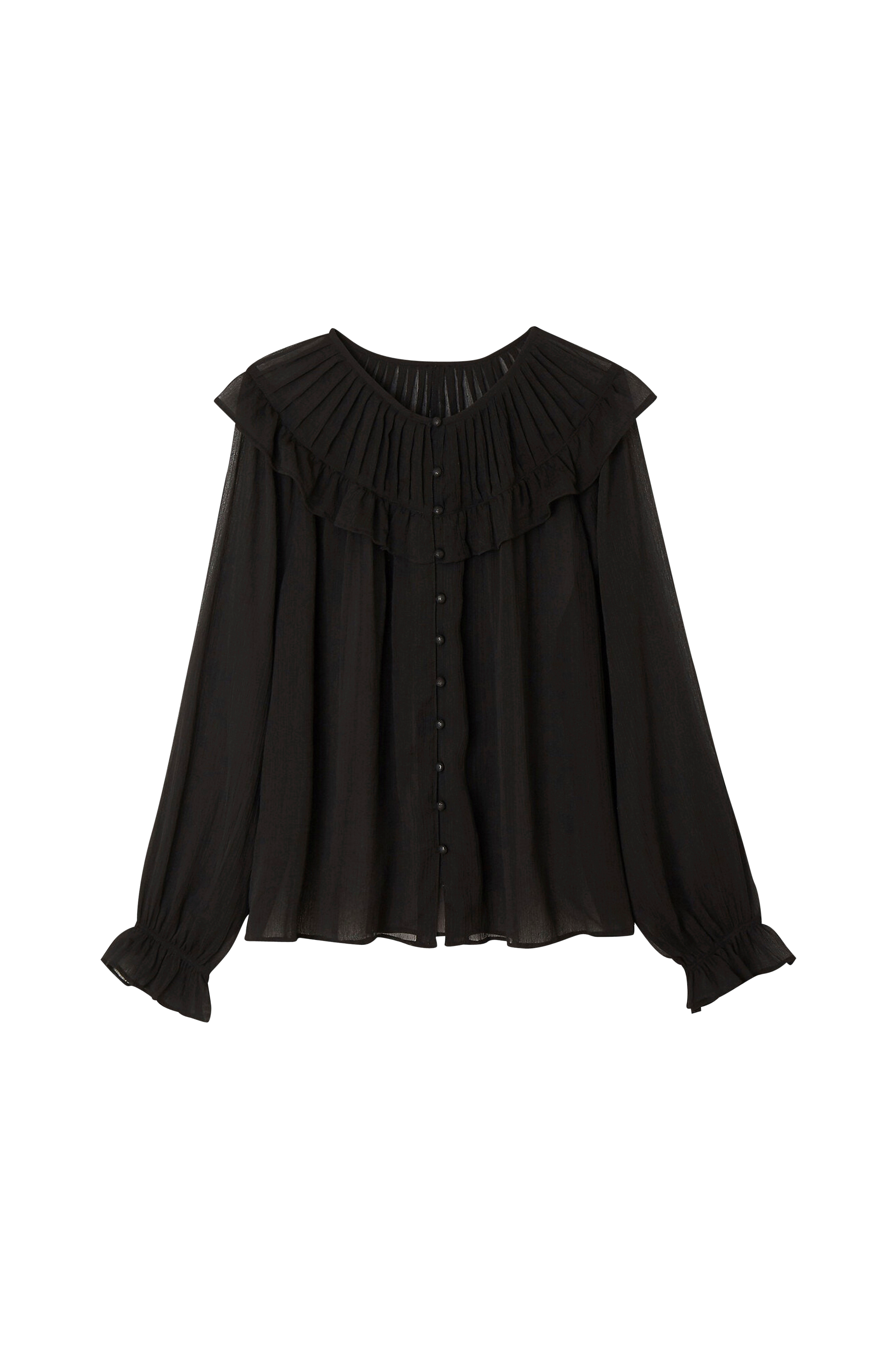 Romantisk flæse og materiale med fint fald. Bluse i feminin model. Detaljer - Langt ærme - Lige model - Rund hals Materiale og vaskeanvisning - 100% polyester - Finvask 30° - Stryges ved lav temperatur/tåler ikke blegemiddel - Tåler ikke tørretumbling - Tåler ikke kemisk rens Yderligere information - Længde 65 cm i str. 38
