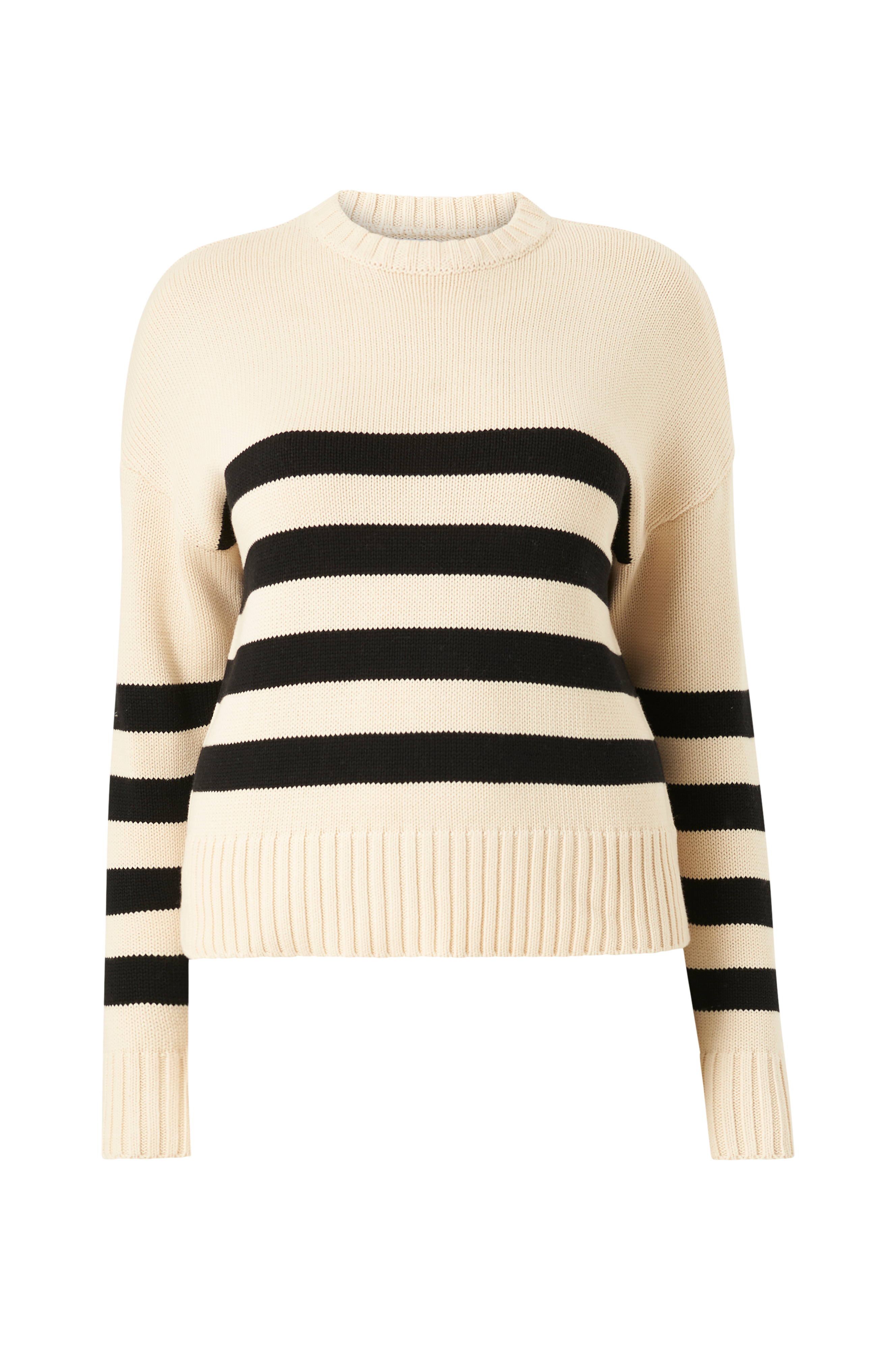 Trøje i maritim stil med grafiske striber. Fremstillet af blandingsmateriale med bomuld.