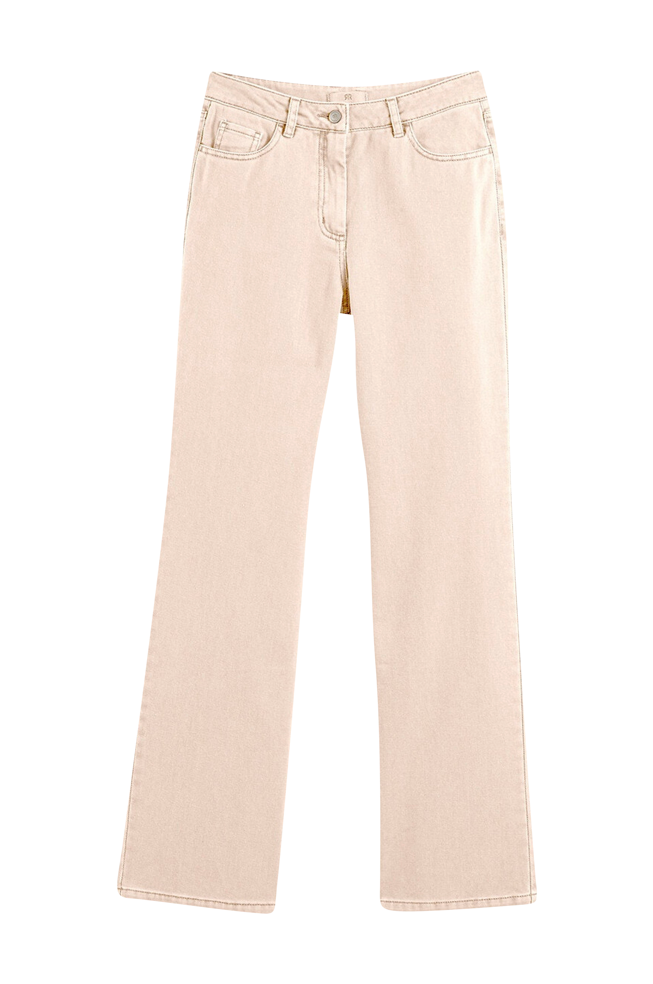 Vide bukser i trendy model. Høj talje som giver en smuk silhuet. Detaljer - Vid model - Høj talje - 2 lommer og en møntlomme foran - 2 påsyede baglommer - Benlængde 77 cm, vidde forneden 26 cm, i str. 38 Materiale og vaskeanvisning - 100% bomuld - Finvask 30° - Stryges ved middeltemperatur/tåler ikke blegemiddel - Tåler ikke tørretumbling - Tåler ikke kemisk rens