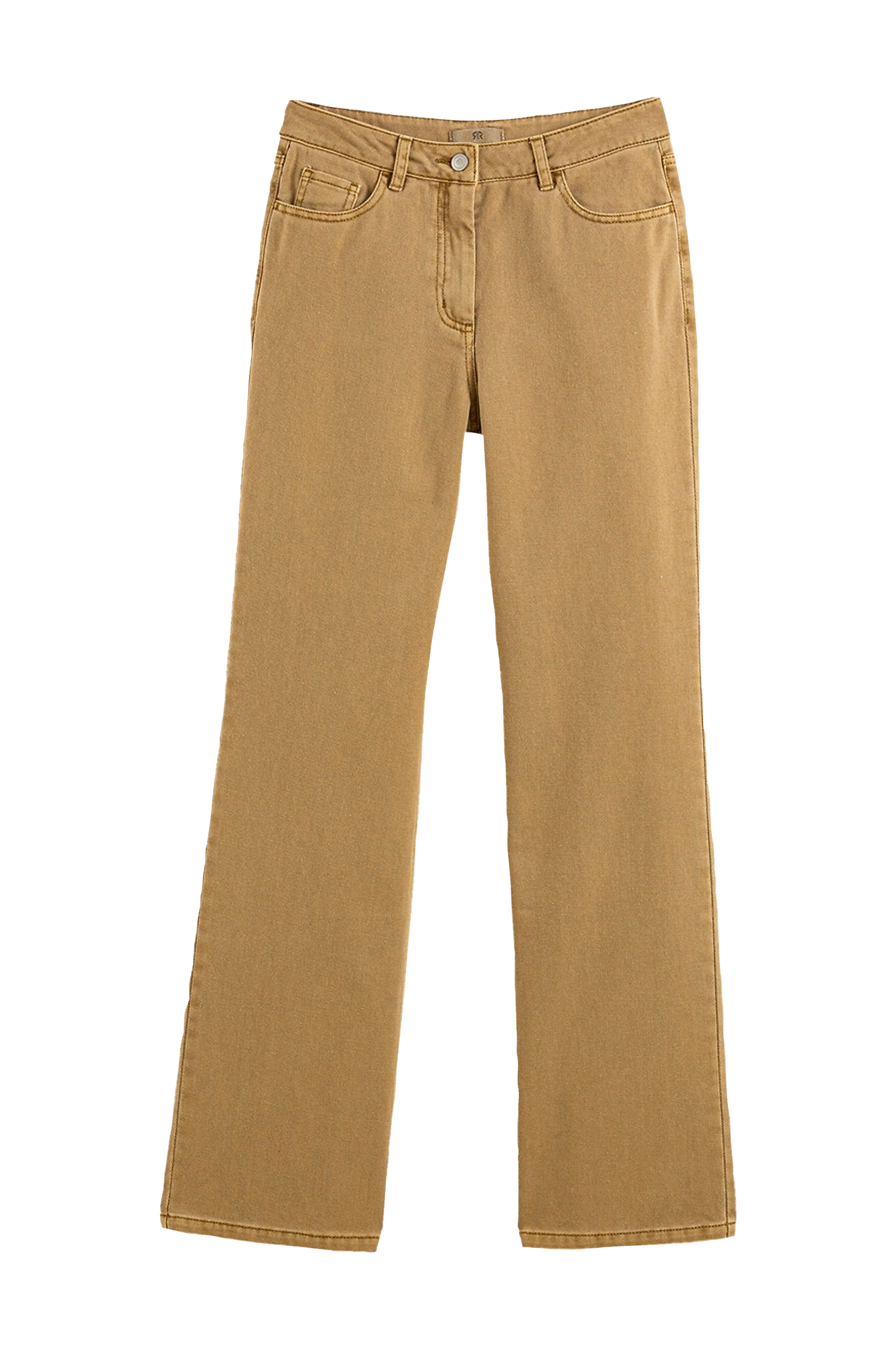 Vide bukser i trendy model. Høj talje som giver en smuk silhuet. Detaljer - Vid model - Høj talje - 2 lommer og en møntlomme foran - 2 påsyede baglommer - Benlængde 77 cm, vidde forneden 26 cm, i str. 38 Materiale og vaskeanvisning - 100% bomuld - Finvask 30° - Stryges ved middeltemperatur/tåler ikke blegemiddel - Tåler ikke tørretumbling - Tåler ikke kemisk rens
