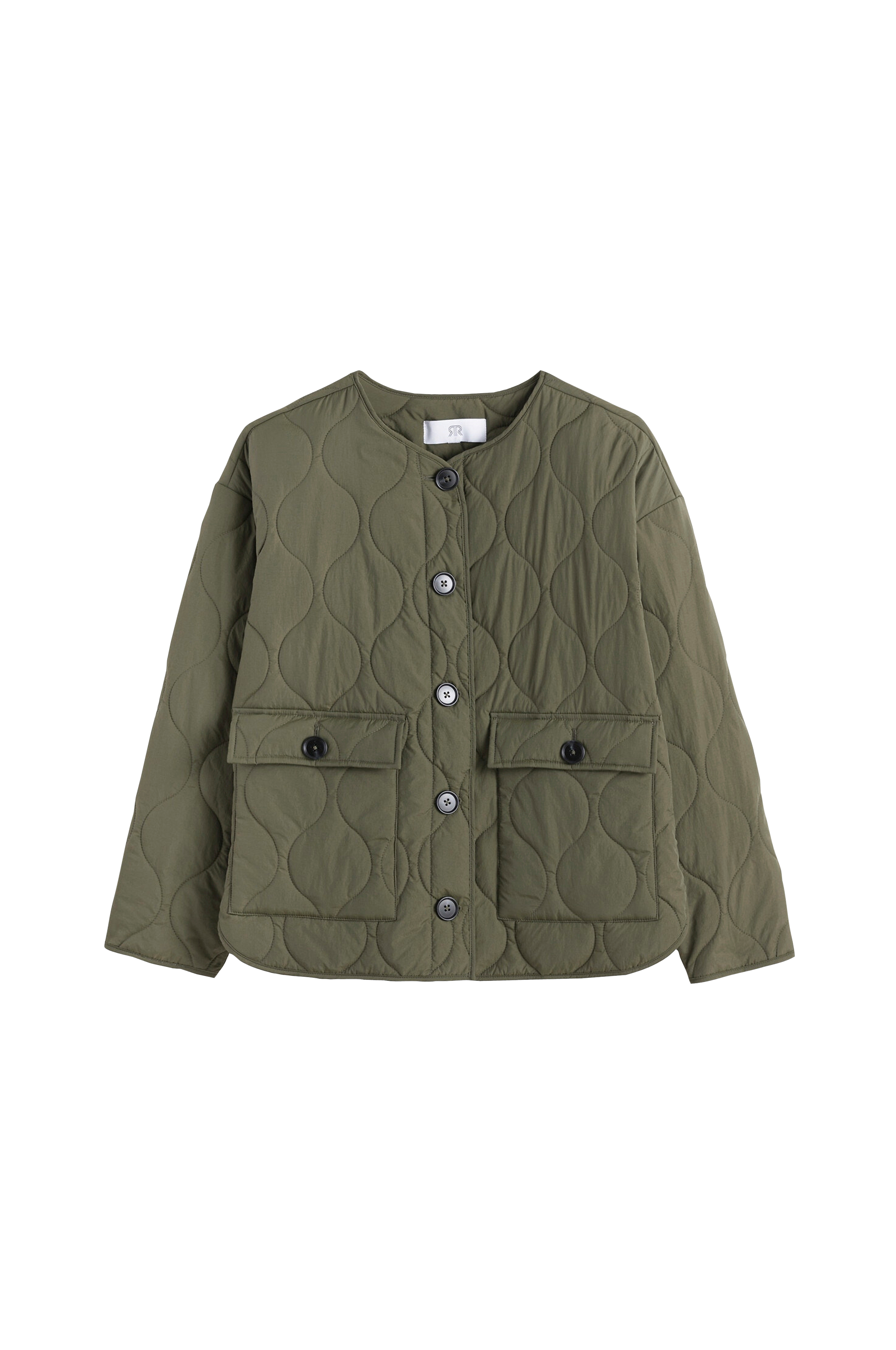 Dynejakke i let materiale. Opdateret, trendy model med fin pasform. Detaljer - Kort model - Rund hals - Lommer med klap og knap foran - Knaplukning - Afrundet kant forneden Produktets mål i str. 38/M - Længde: 75 cm - Ærmelængde: 53 cm - Brystvidde: 115 cm