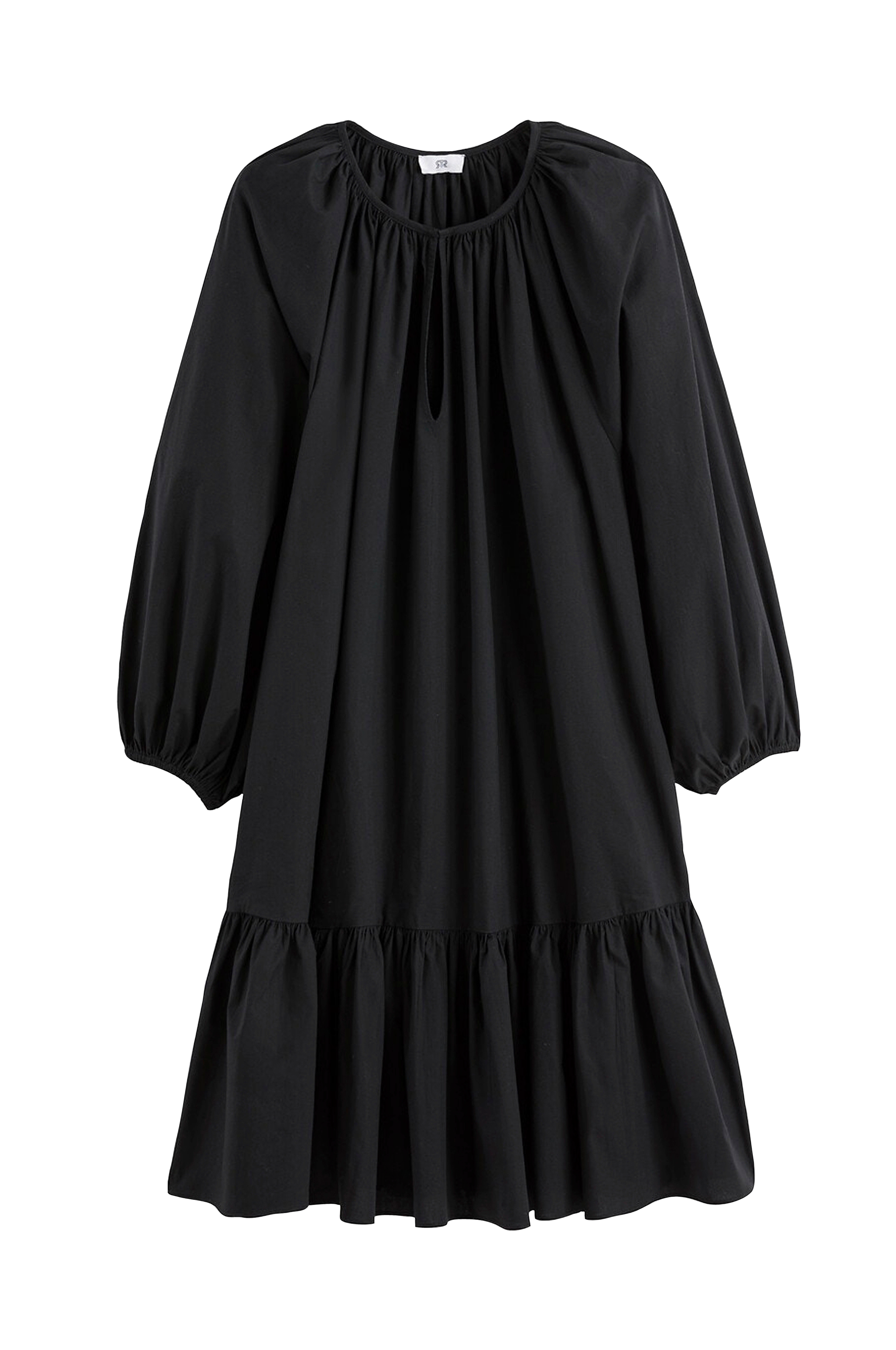 Kjole i løst snit med A-formet pasform og 3/4-langt ærme. Behageligt materiale i bomuldspoplin. Detaljer