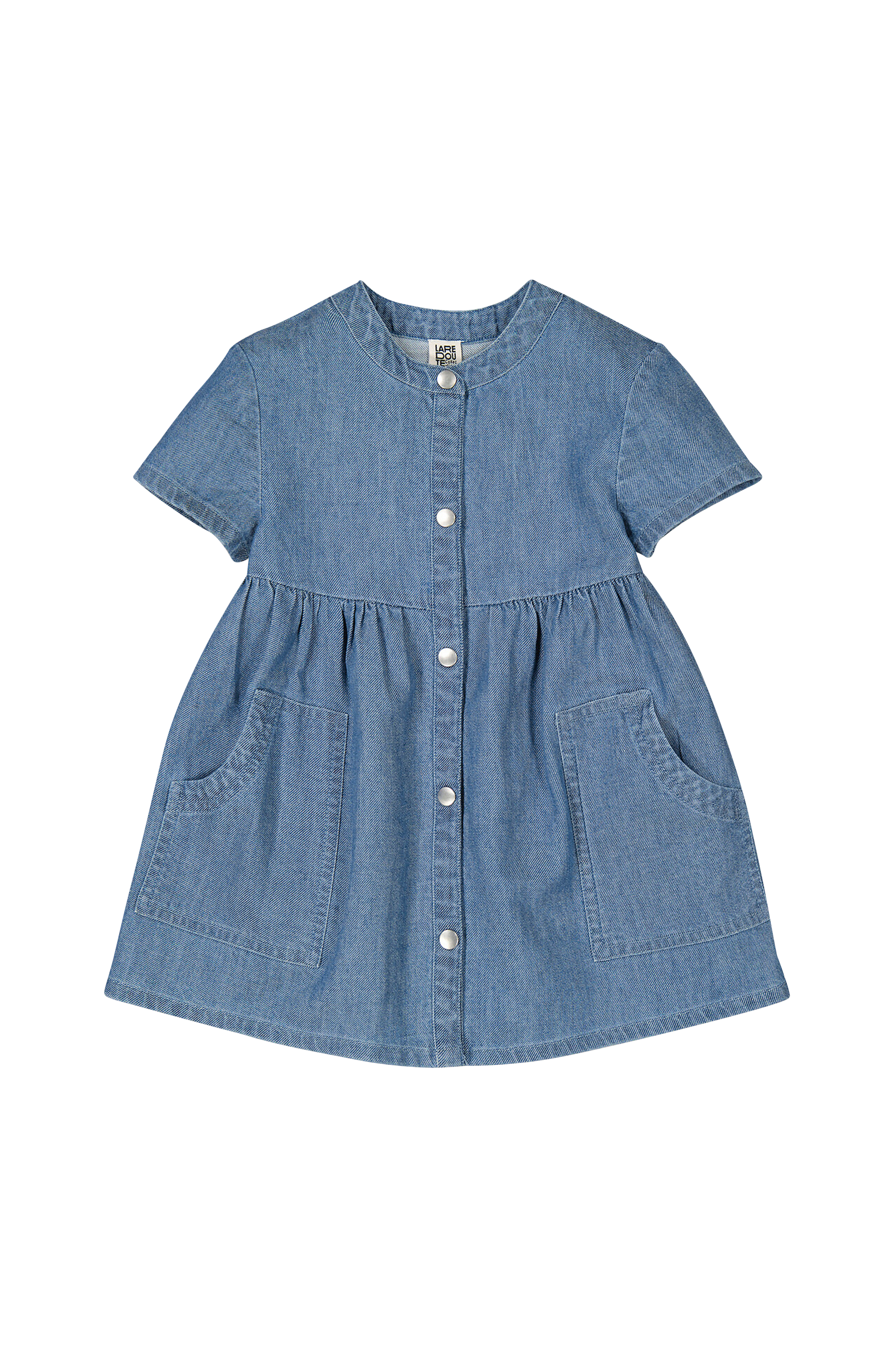 Detaljer om produktet - Stil: fuld - Mini - Korte ærmer - Rund halsudskæring - Trykknaplukning foran - 2 påsatte lommer foran
