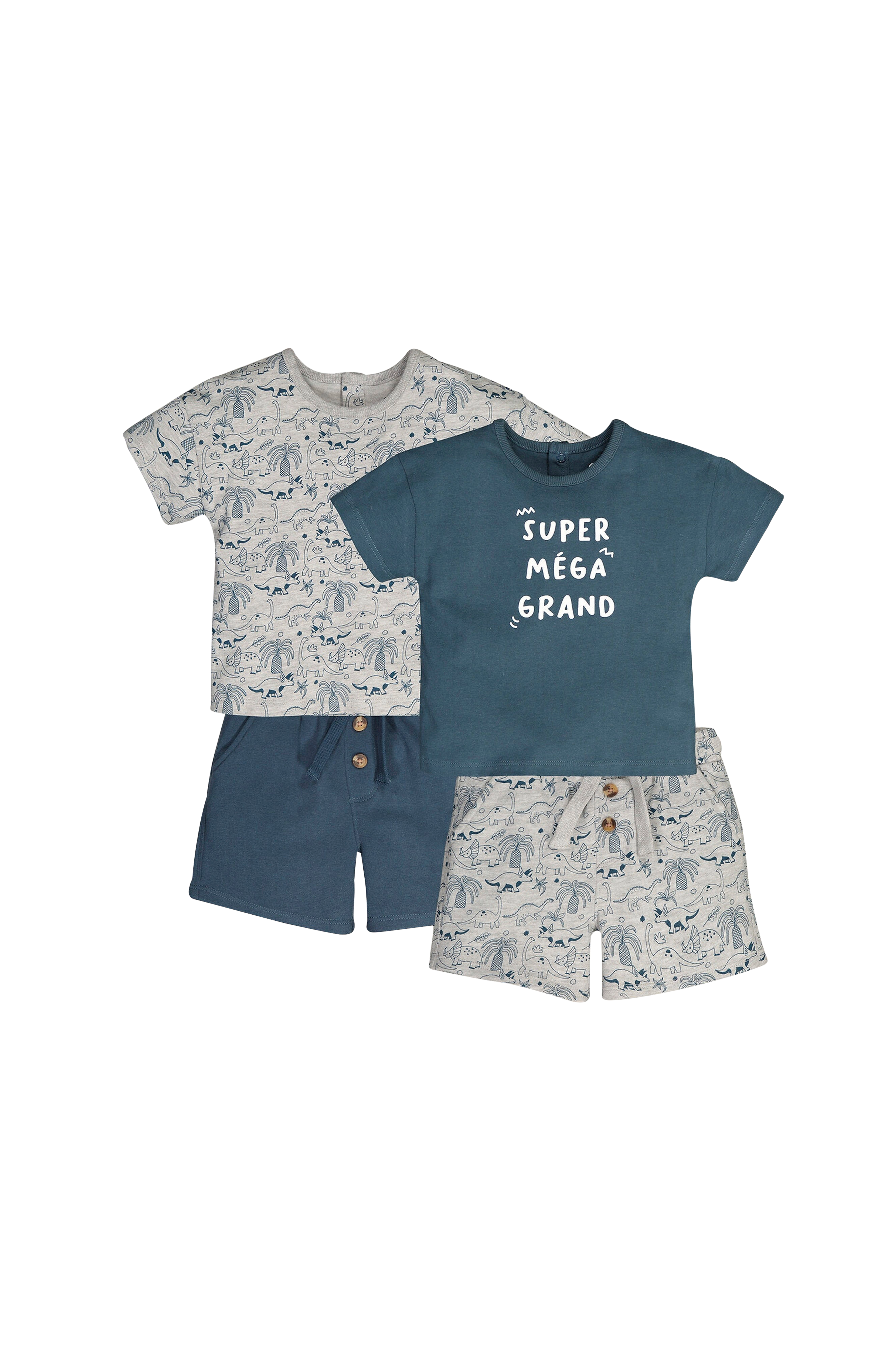 - T-shirt: 1 med dinosaurusmotiv + 1 ensfarvet med tekstmotiv Super Méga Grand foran