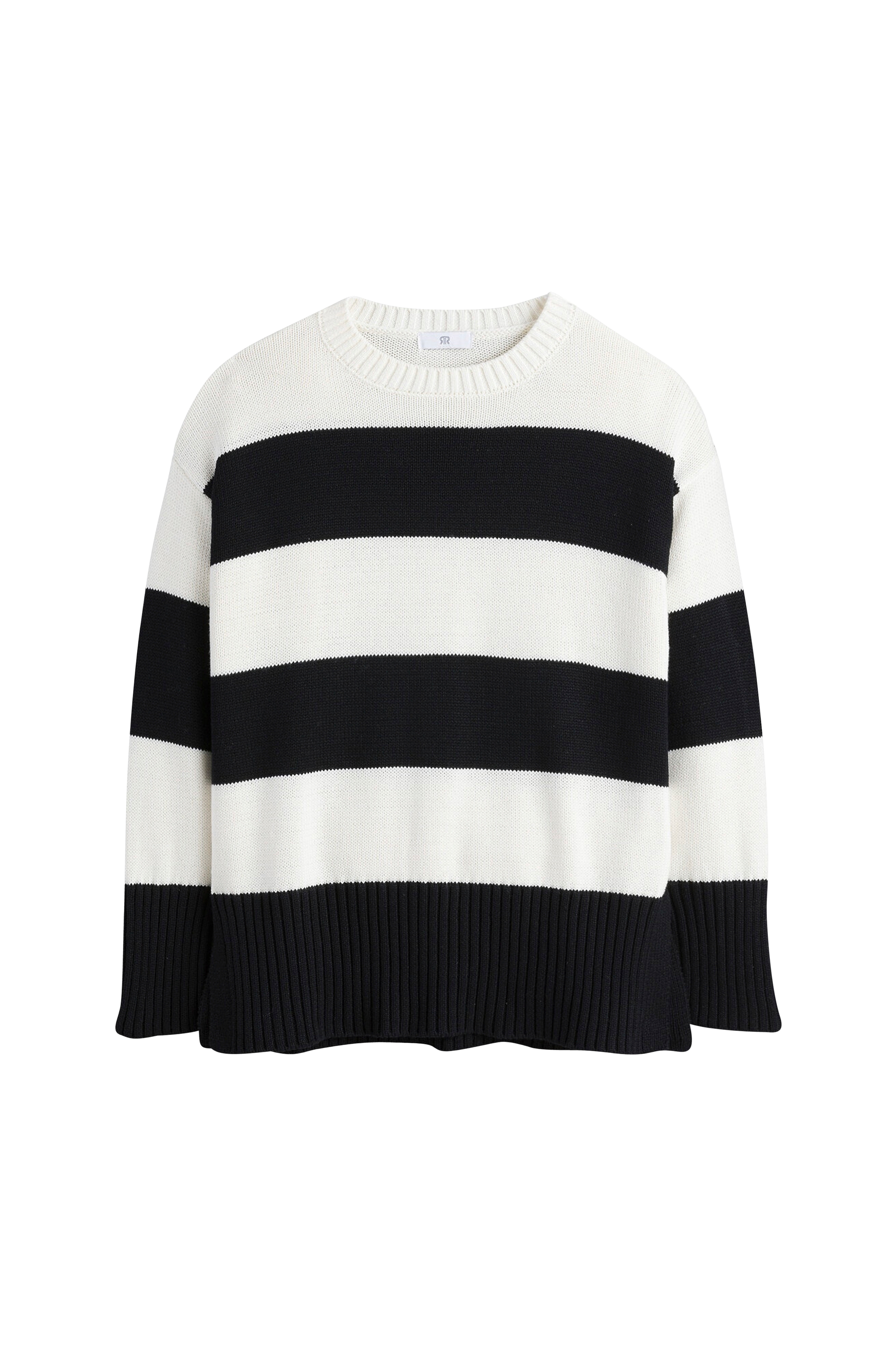 Trøje med brede striber samt rummelig og behagelig pasform. Blandingsmateriale med bomuld. Løst snit. Detaljer