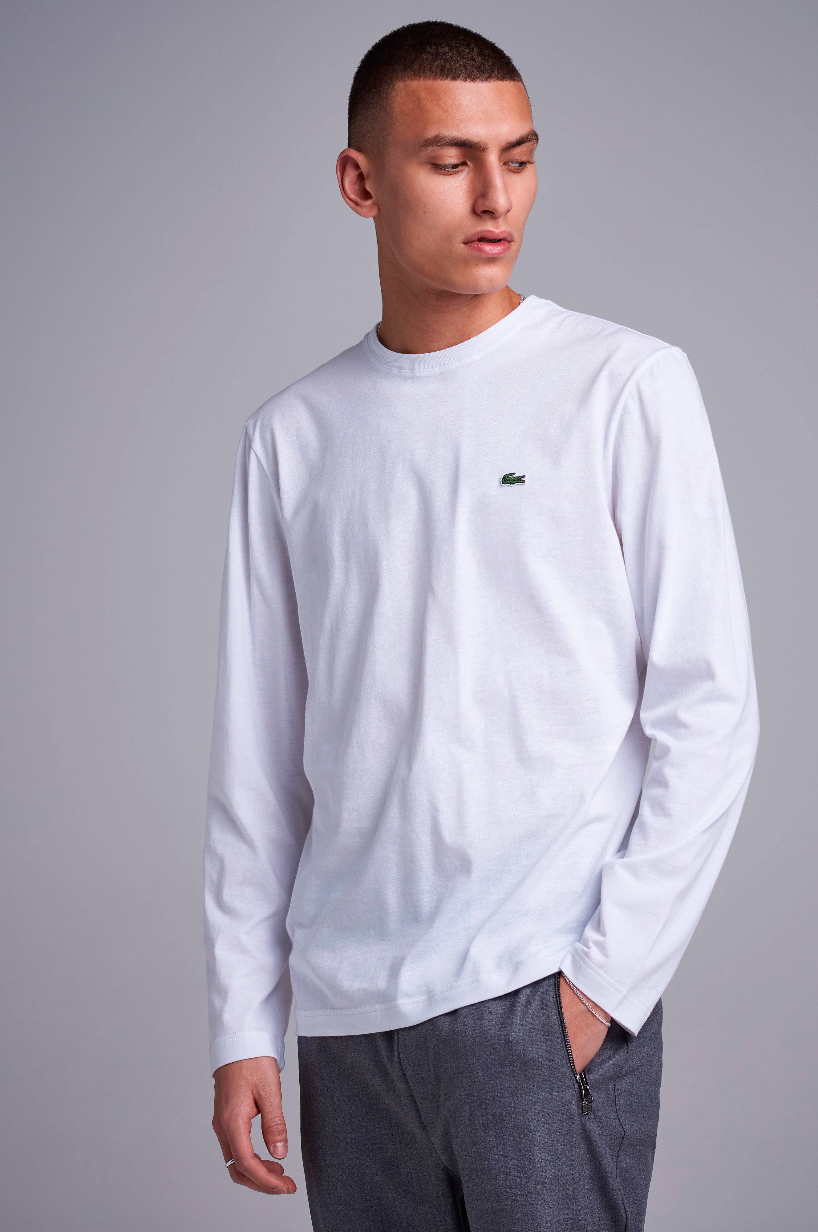 This is a long-sleeved T-shirt from Lacoste featuring the embroidered crocodile logo on the chest. The fit is regular, and the fabric is soft, comfortable cotton. The T-shirt has a crew neck with a ribbed trim, and the bottom hem is straight