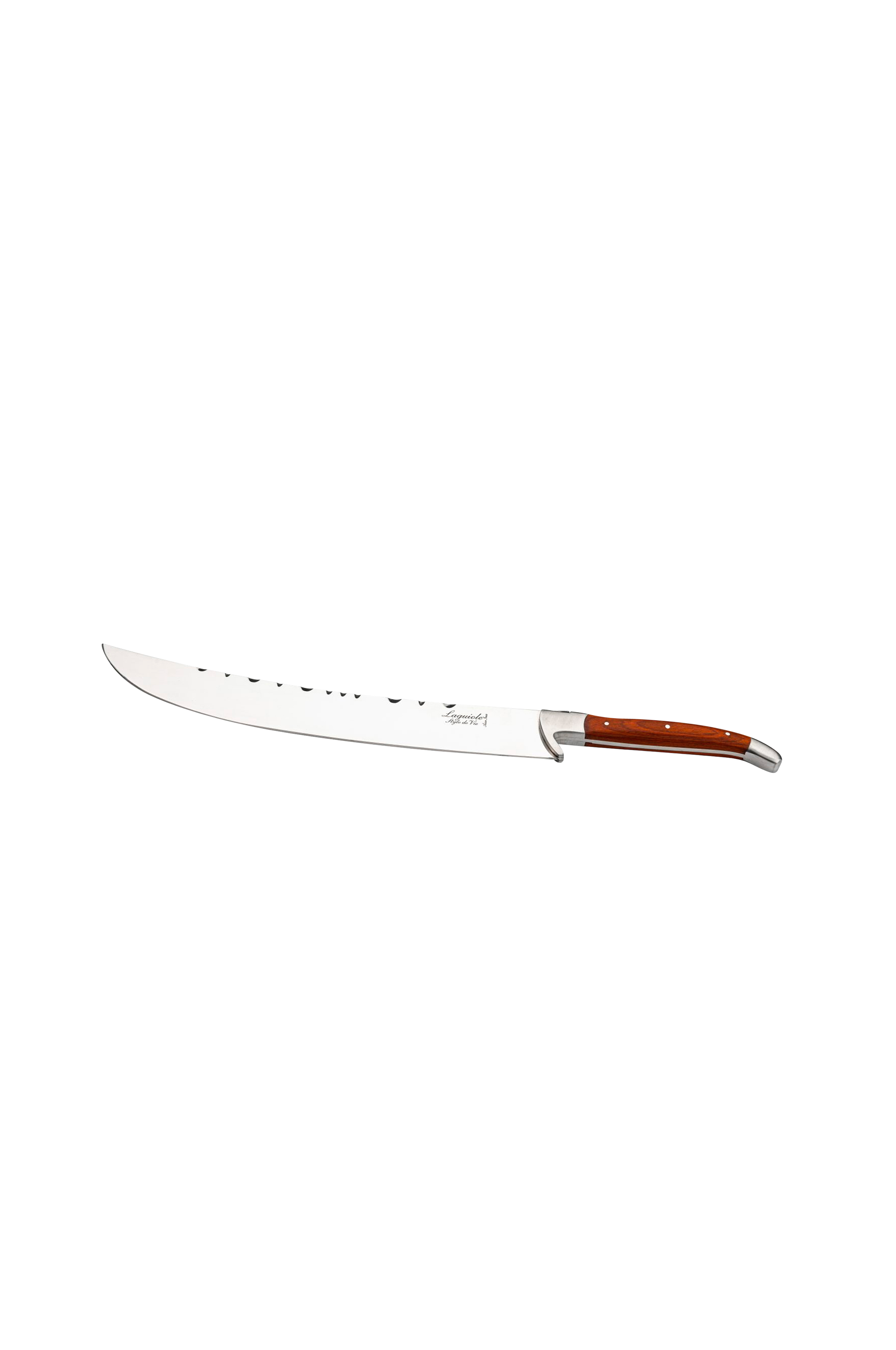 Med champagnesablen i palisander fra luksuslinjen Laguiole Style De Vie bliver det en fest at åbne champagne! Sablens klinge er lavet af hærdet stål kombineret med et håndtag af palisander. Sablens blad har en tykkelse på 2,5 mm og tåler ikke opvaskemaskine. Hver sabel er pakket i et sort luksusetui. Ud over palisander fås champagnesablen også i en variant af oliventræ.