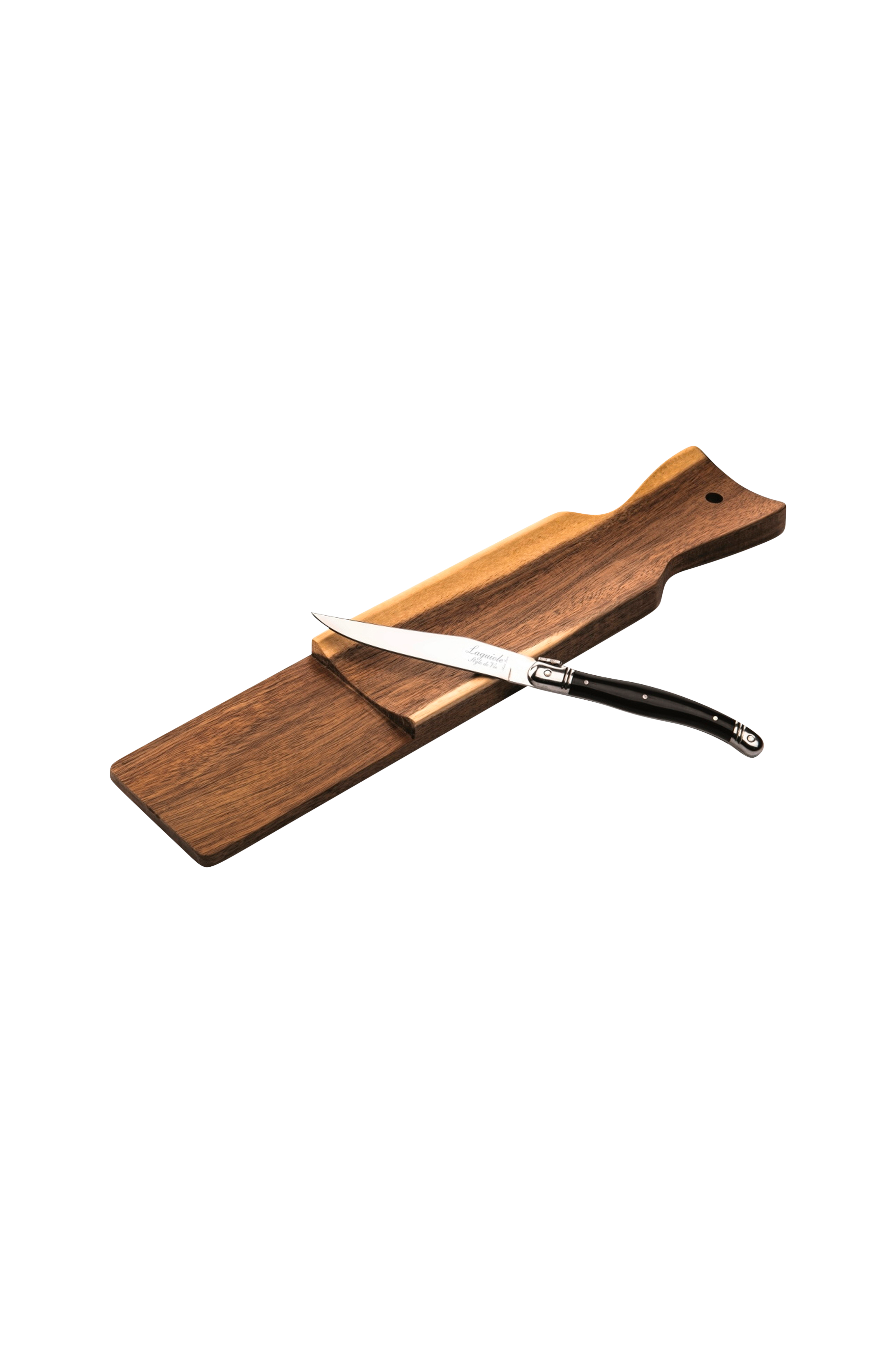 Serveringsbræt i akacie, der er velegnet til at skære pølser, men også ost. Serveringsbrættet er let skulpteret for at holde pølsen på plads. Der medfølger en kniv i rustfrit stål med plasthåndtag. Bladet er 1,2 mm tykt og kan maskinopvaskes. Serveringsbrættet anbefales at blive vasket op i hånden.