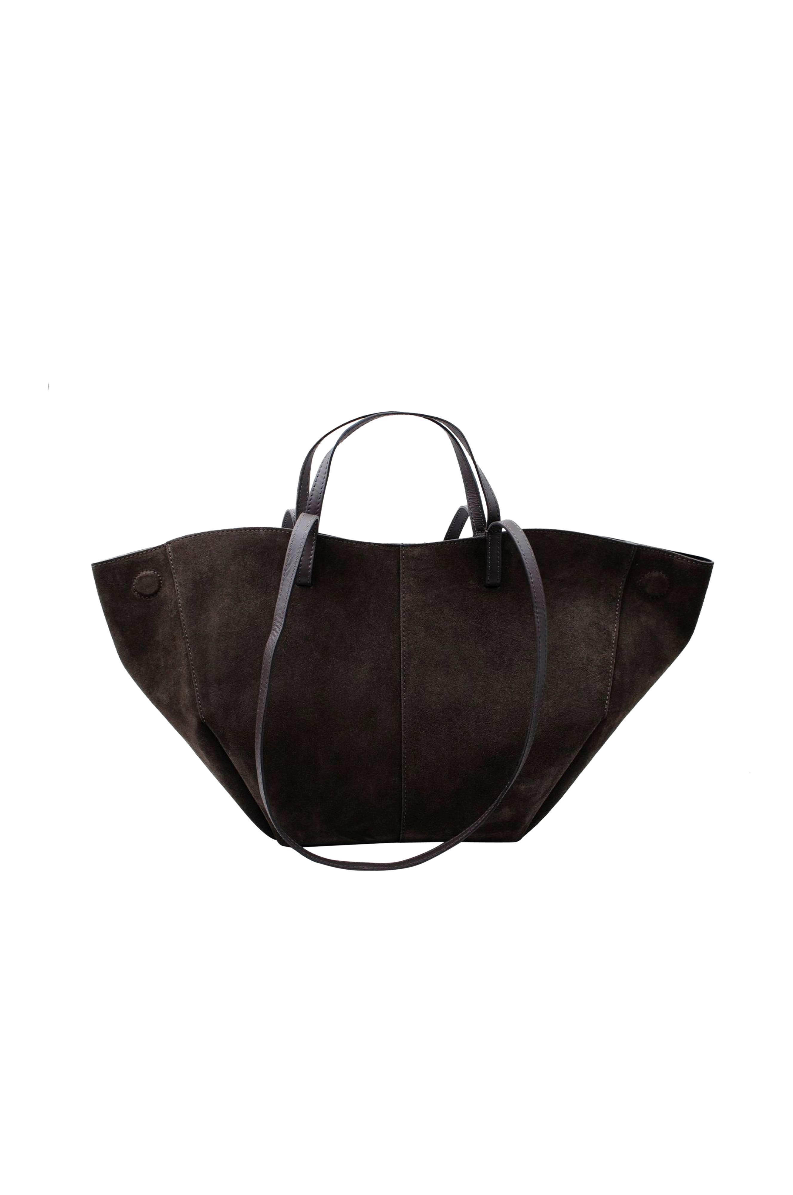 • Taske i ruskind• Skulderstropper• Bærehåndtag• Lukning med karabinhage• Magneter i siderne• En indvendig, udtagelig taske med lynlåslukning