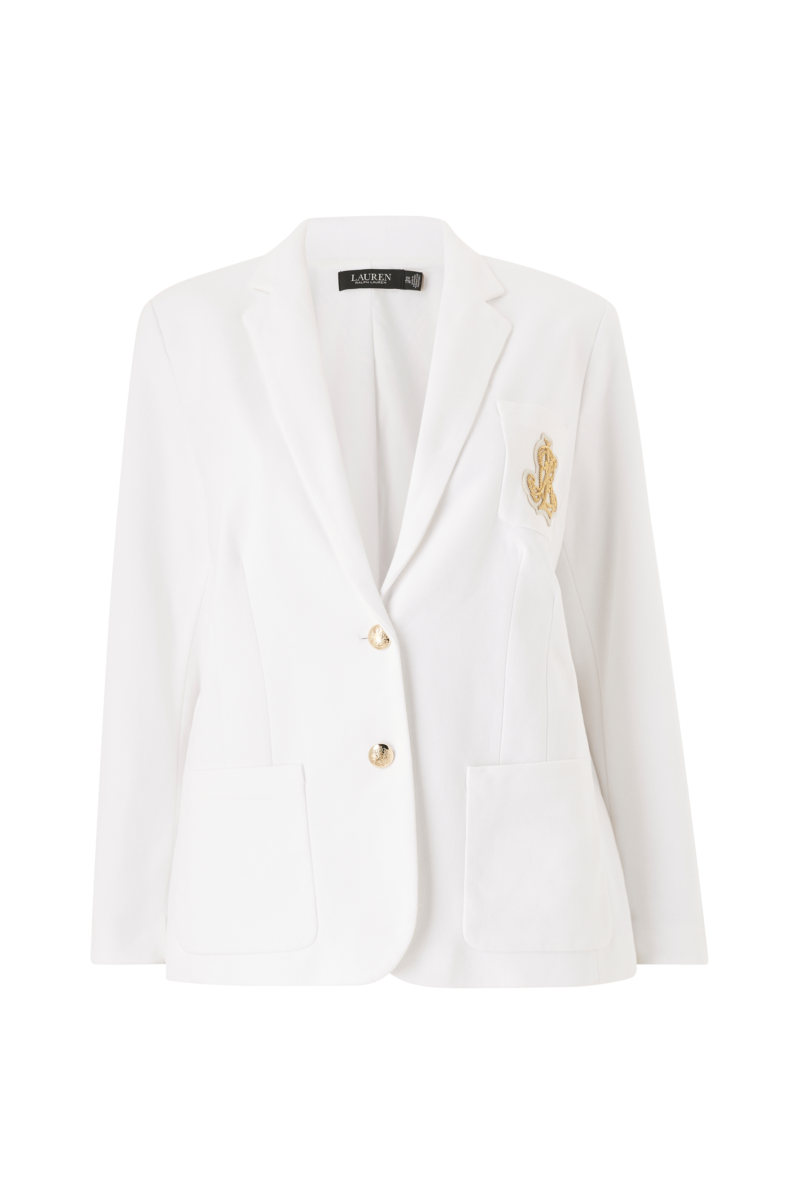 Foret blazer i piquémateriale med let vatterede skuldre. Brystlomme med stort sølvfarvet broderi. To påsyede lommer. Knapper i sølvfarvet metal med præget logo. Fire metalknapper i ærmekant.Plusstørrelser.Længde ca. 70 cm i str. 2XL.