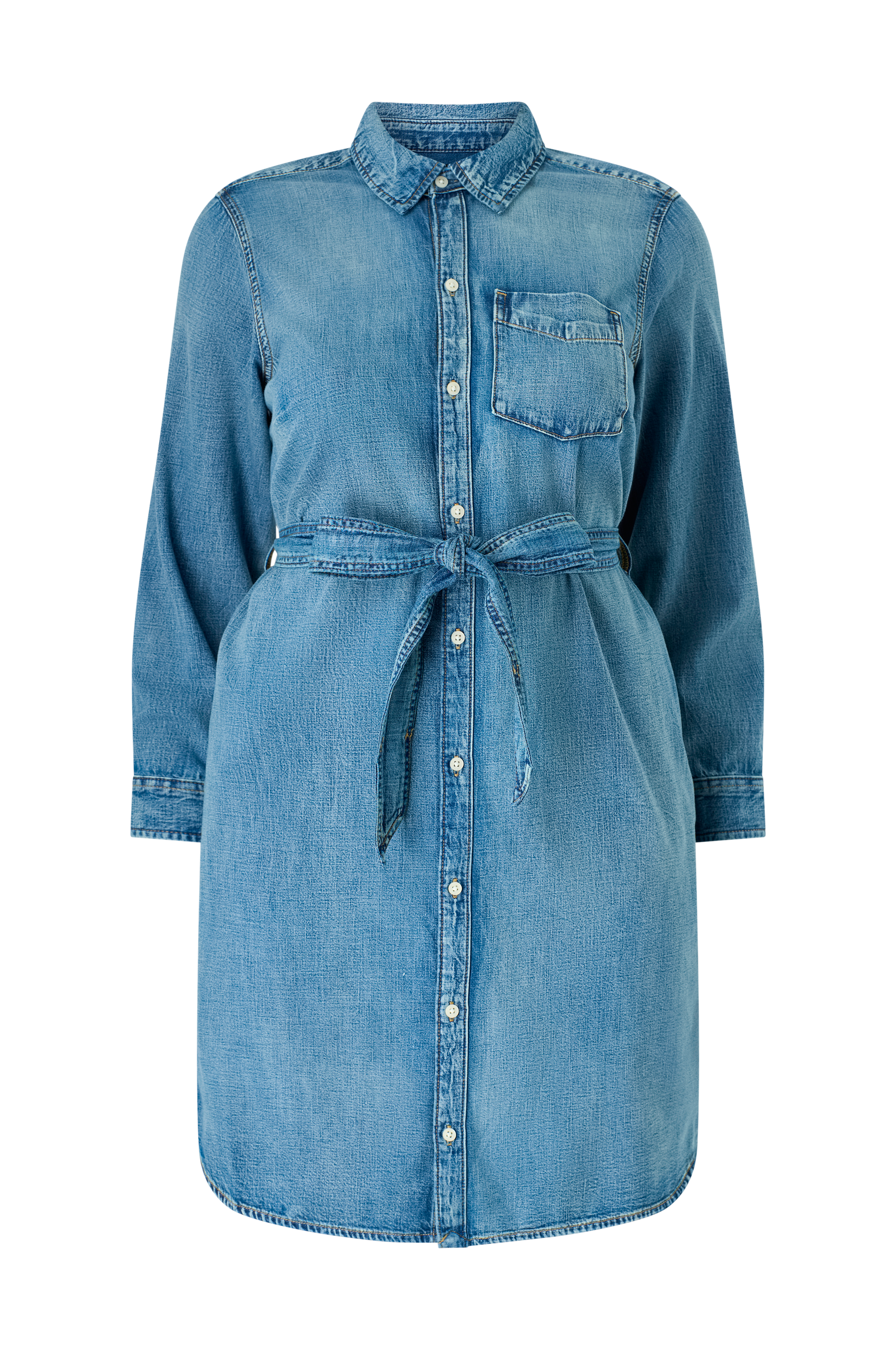 • Kjole i denim• Krave• Knapper ved manchetterne• Knaplukning• Aftageligt bindebælte ved taljen• En brystlomme• To sidelommer• Afrundet søm• Store størrelser• Længde: 99 cm i størrelse 1X