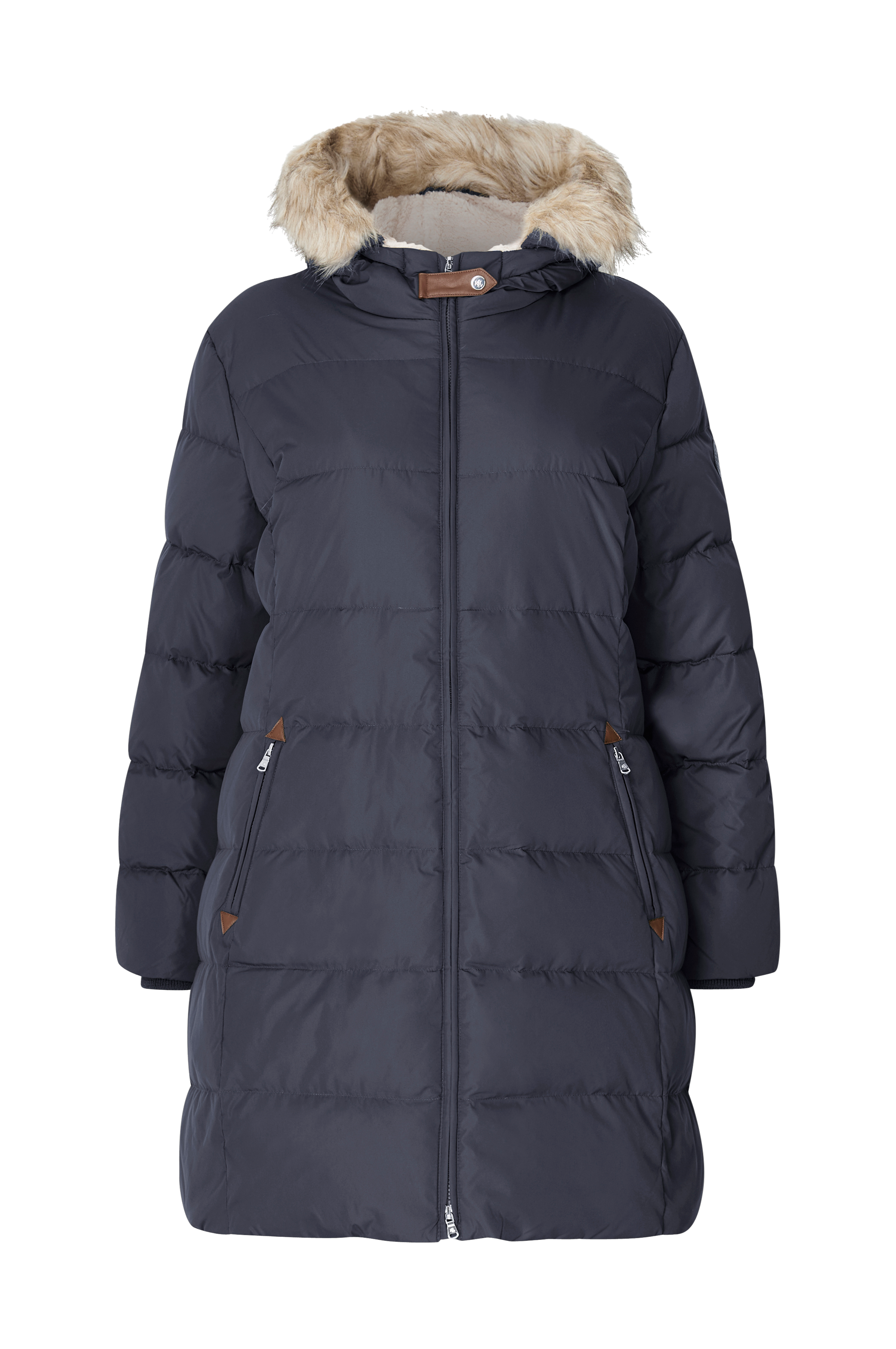 • Foret frakke• To-vejs lynlås foran• To lynlåslommer• Hætte med teddyforing og aftagelig imiteret pelskant• Justérbar rem i ryggen• Skjult ribmanchet ved manchetterne• Store størrelser• Længde: 98 cm i størrelse 2X