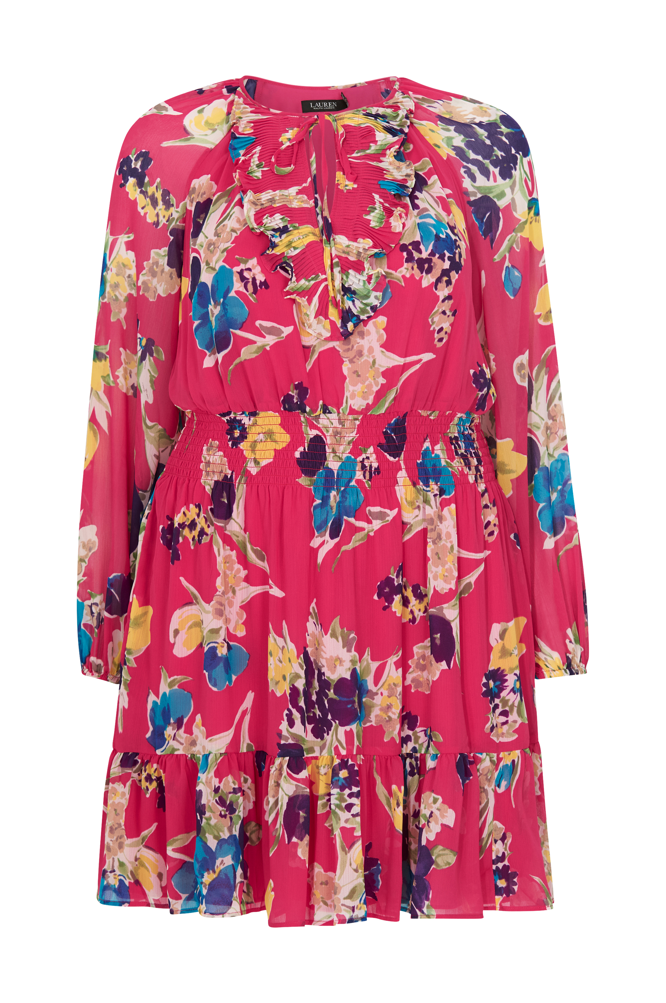 • Store størrelser • Kjole i chiffon • V-udskæring med flæset volant og bindebånd foran • Smock ved taljen • Lange ballonærmer med elastiske manchetter • Volant nederst • Foret • Længde: 98 cm i størrelse 48 • Produktet indeholder genindvundet materiale, som genbruges for at reducere mængden af affald samtidigt med at der ikke anvendes nye ressourcer.