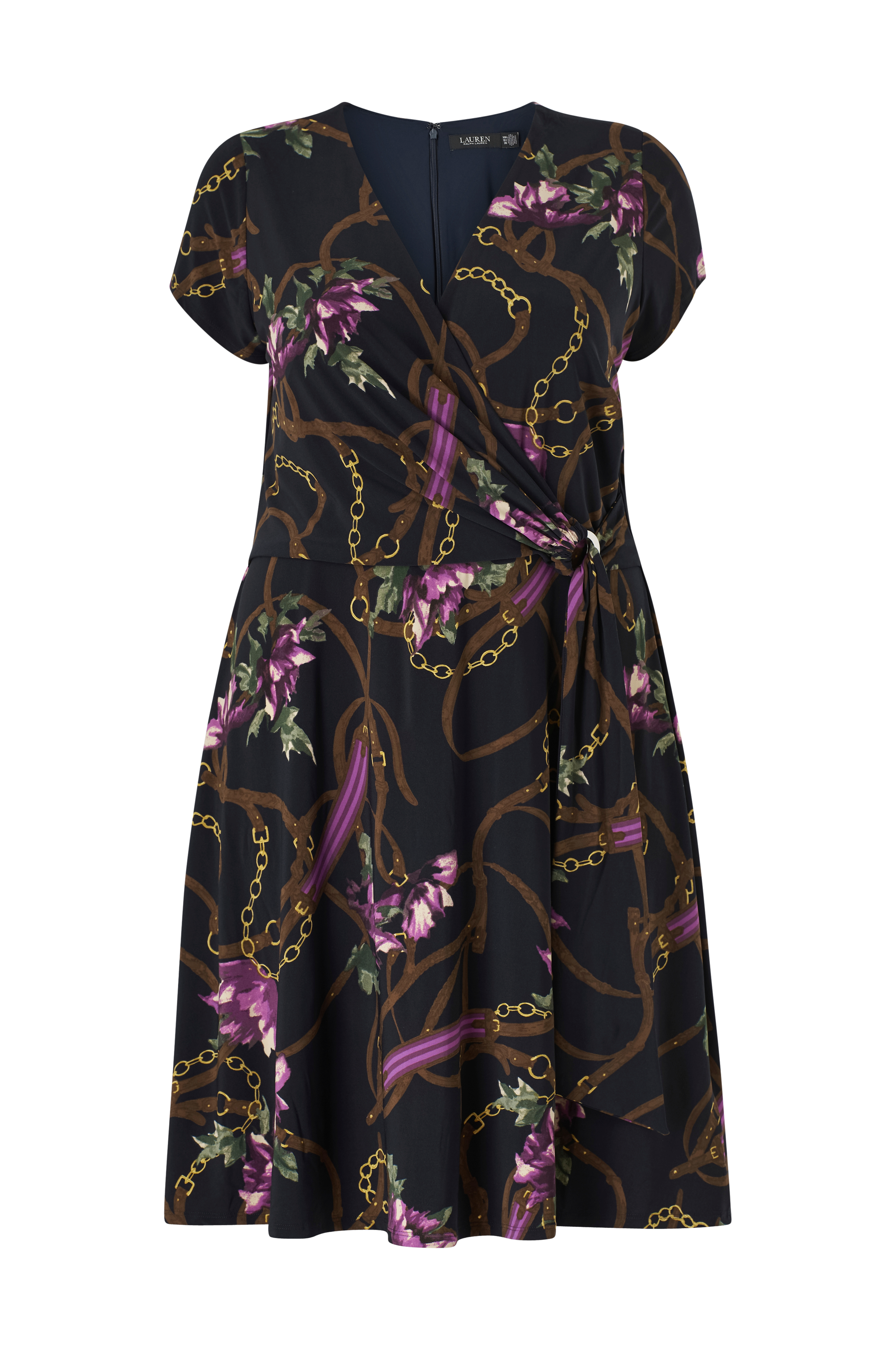• Store størrelser• Model med svaj med slå-om design på toppen• Draperet talje med spænde i siden• Kort ærme• Vidde i nederdelen• For på toppen• Længde: 107 cm i størrelse 14W
