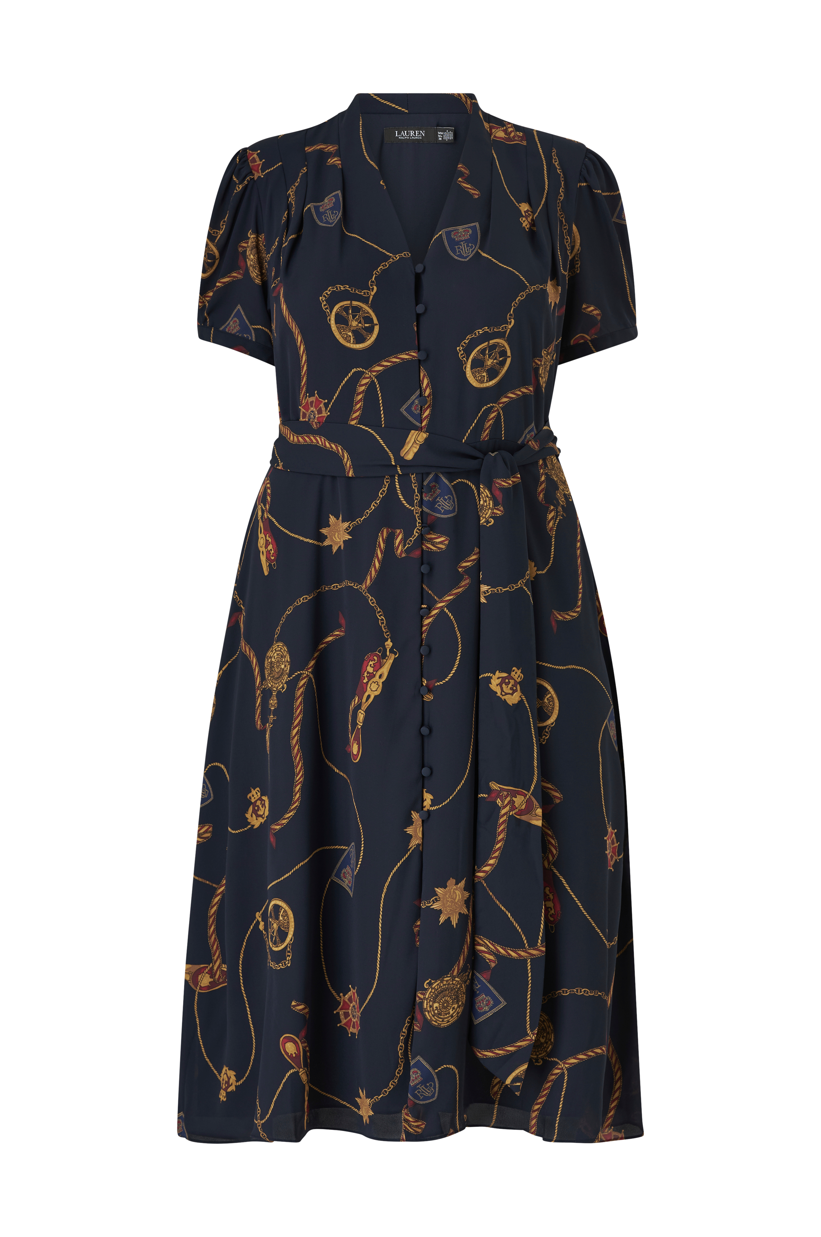• Store størrelser• Lang model med svaj• V-formet halsudskæring• Løkkelukning med beklædte knapper hele vejen frem• Kort ballonærme med tynd manchet• Markeret talje med bæltespænde• Foret• Længde: 120 cm i størrelse 14W