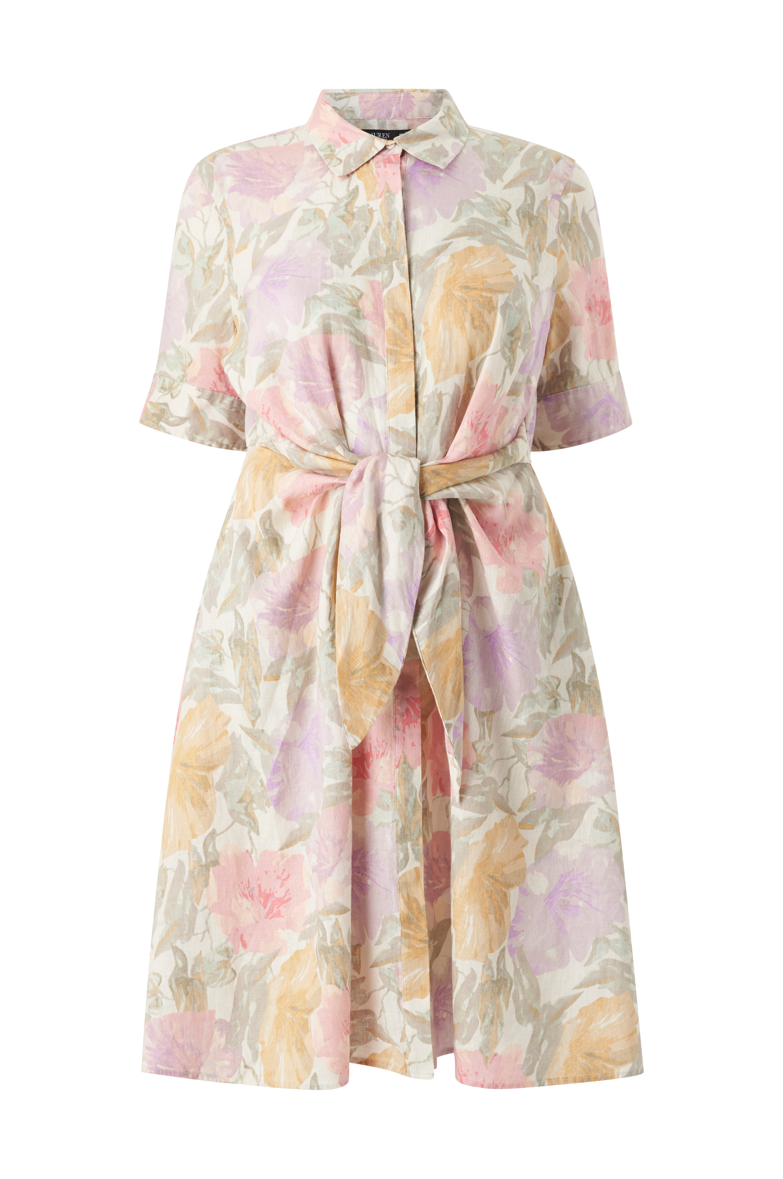 • Kjole i hør• Korte ærmer med knap ved manchetterne• Skjult knapstolpe hele vejen frem• Bindebånd ved taljen• Sidelommer• Store størrelser• Længde: 106 cm i størrelse 46