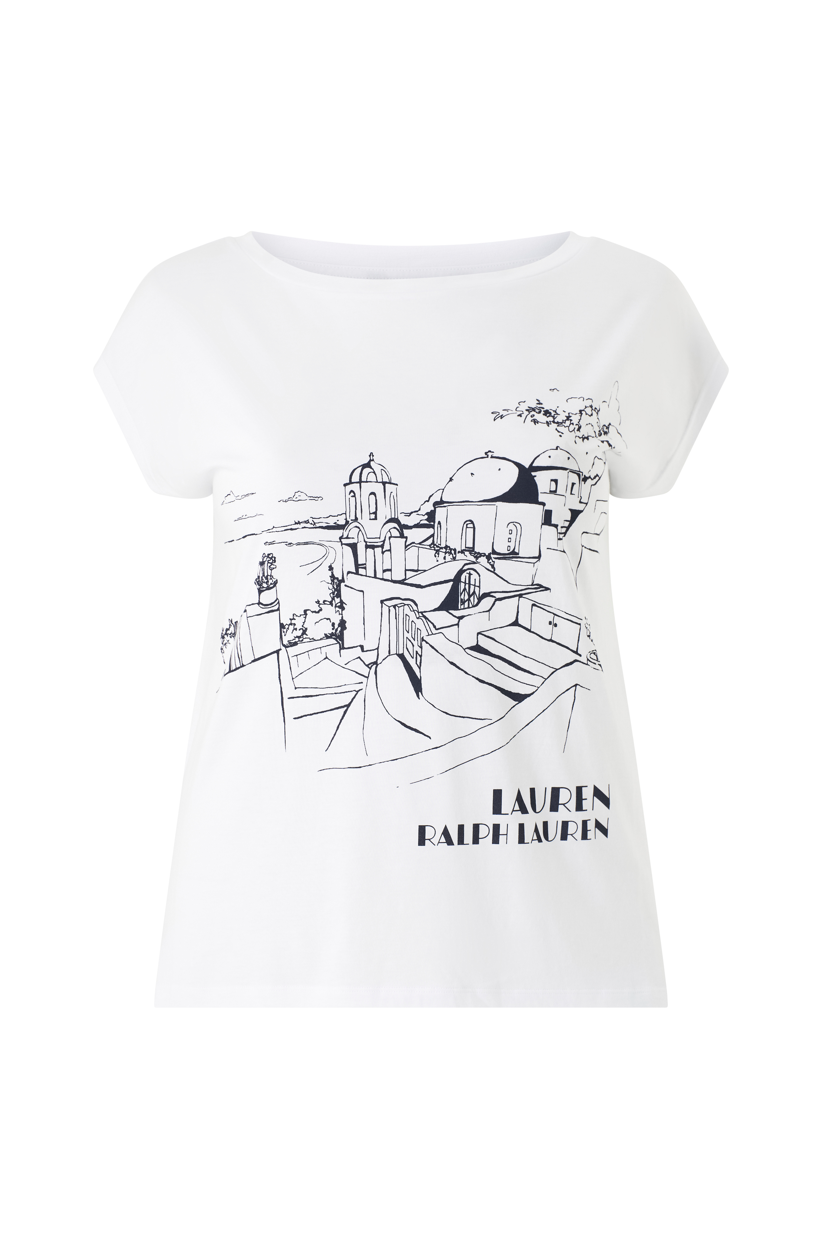 • Top med tryk på forsiden• Bådudskæring• Kort ærme• Afslappet pasform• Store størrelser