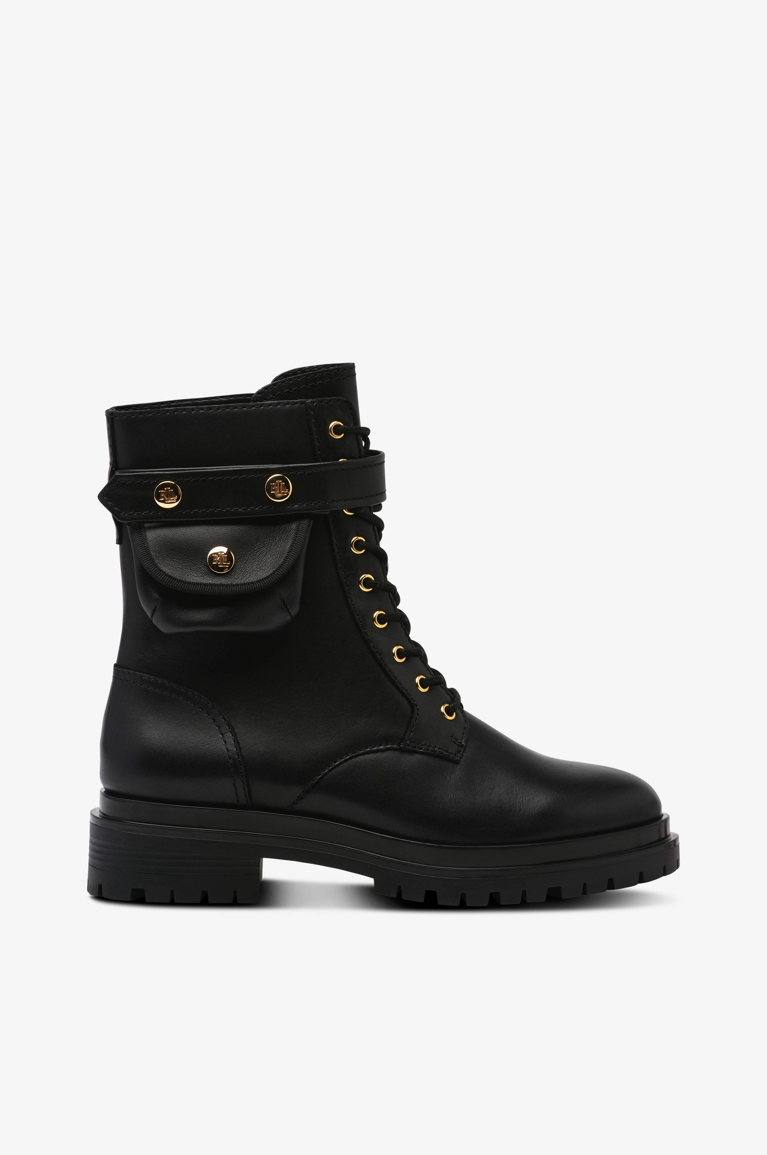 • Model med snøring• Justérbar strop på toppen med lille lomme på ydersiden• Tekstilforing• Indersål i læder• Grovmønstret ydersål i gummi• Skafthøjde: 16,5 cm i str. 37• Hælhøjde: 4,5 cm