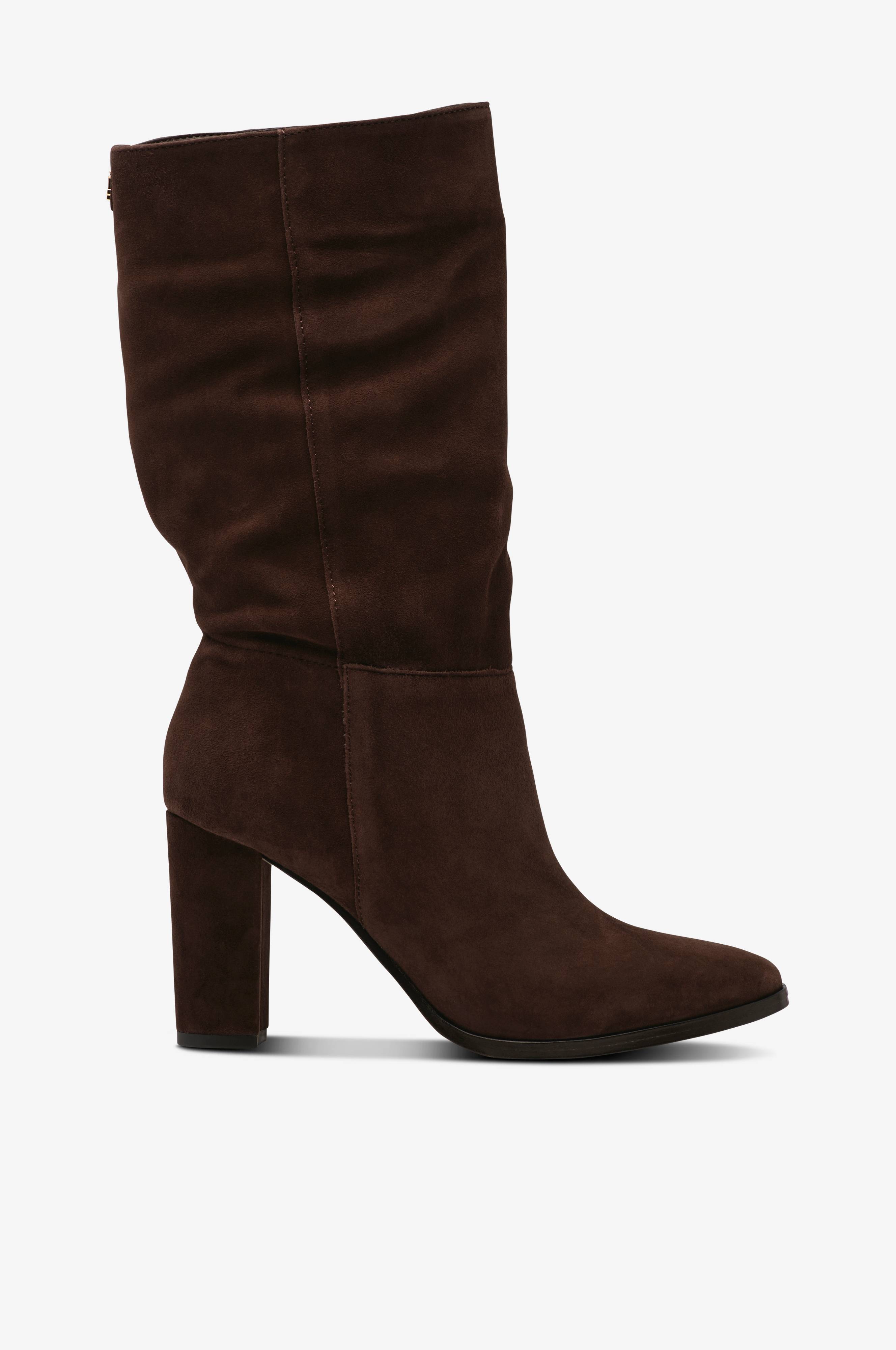 • Boots i ruskind• Logo i metal bag på skaftet• Spids tåform• Læderbetrukket indersål• Beklædt hæl• Skafthøjde: 25 cm i str. 37• Hælhøjde: 8 cm