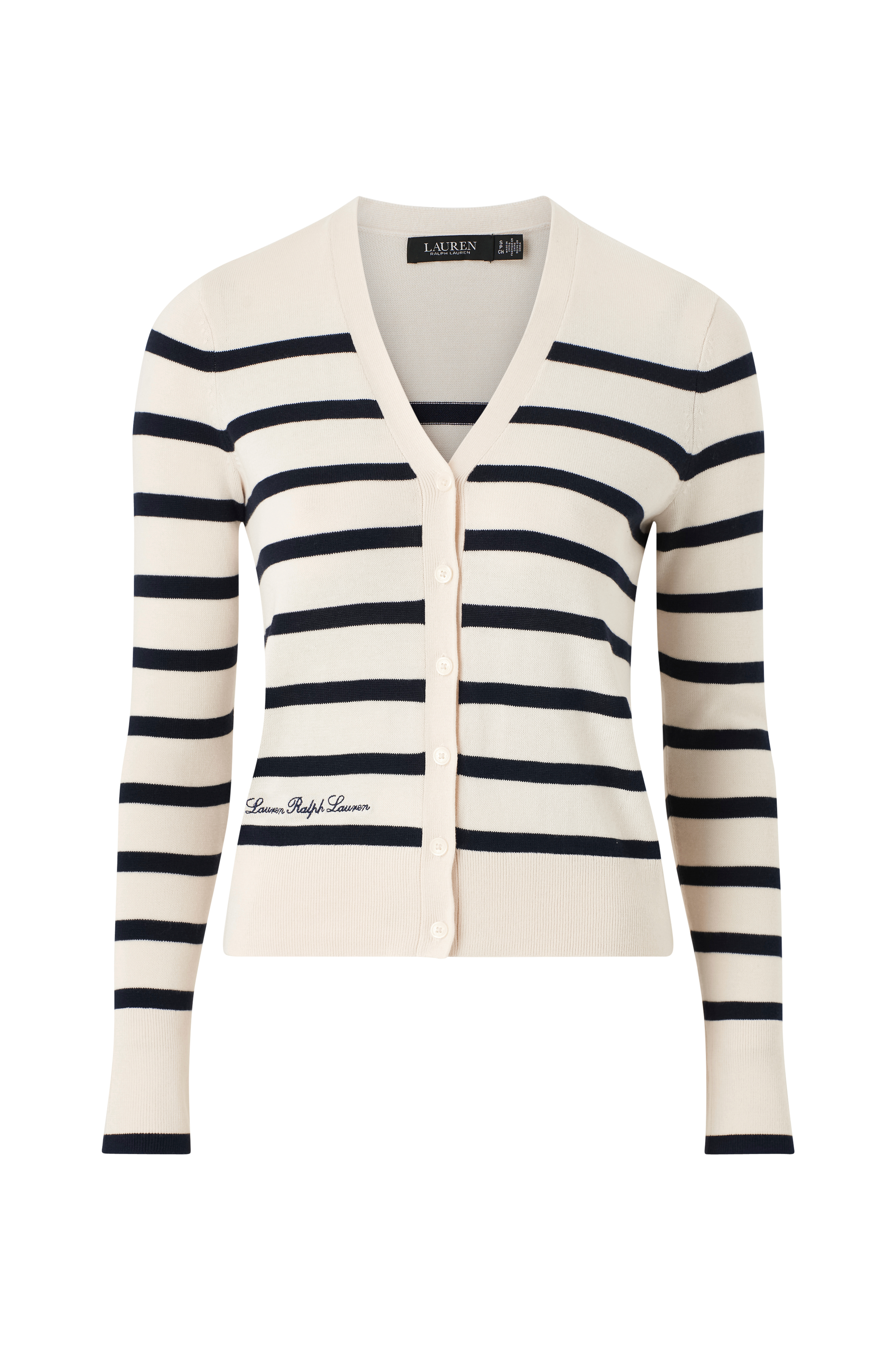 • Blød, fintstrikket cardigan• V-formet halsudskæring• Knaplukning• Broderet logo nede foran