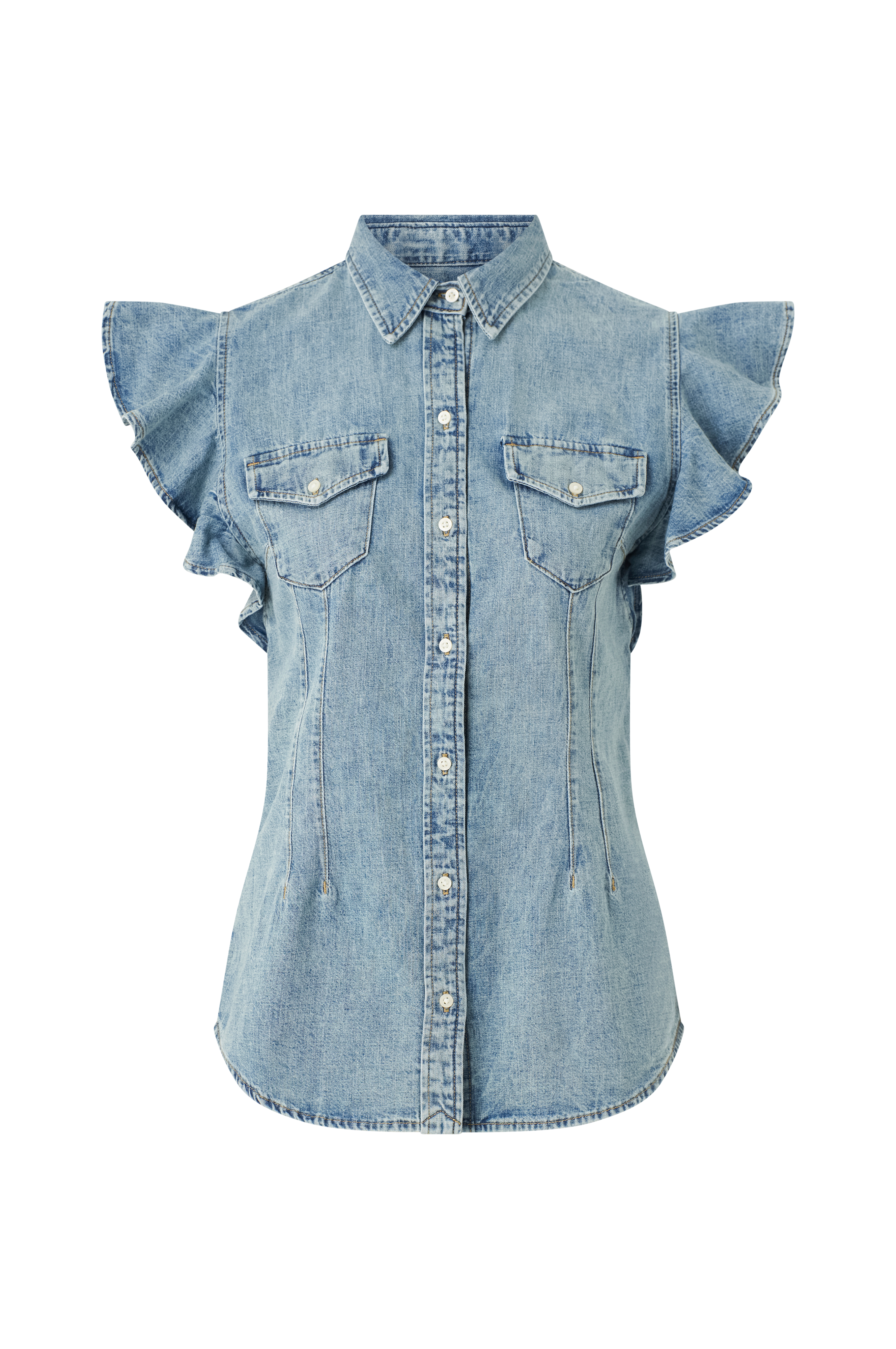 • Ærmeløs cowboyskjorte med volanter omkring ærmegabene