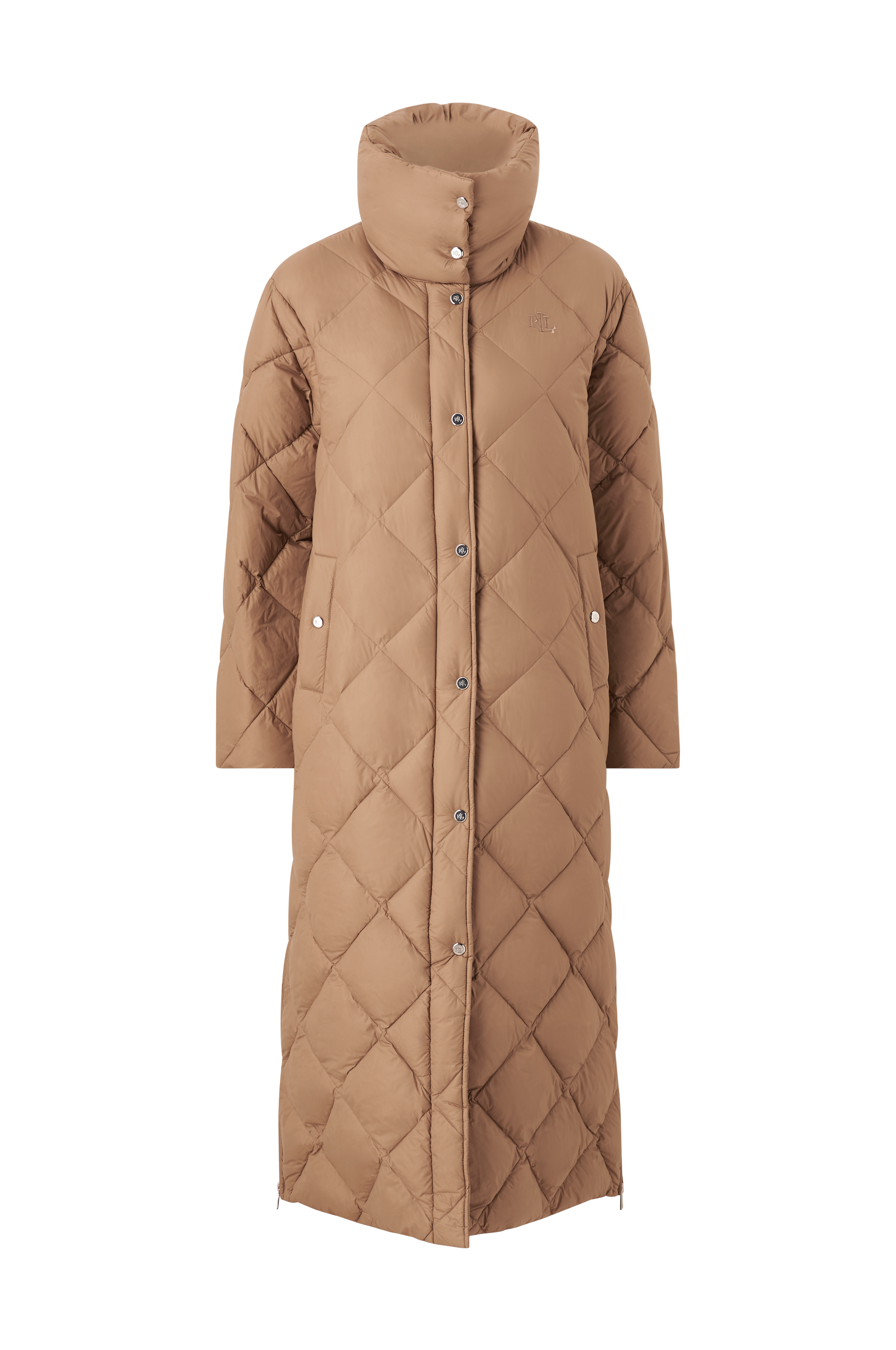 • Lang, foret frakke• Quiltet mønster• Lynlåslukning med vindflap og trykknapper• Opretstående krave• Lynlåse nede i siderne• Broderet logo på brystet• Længde: 120 cm i størrelse S