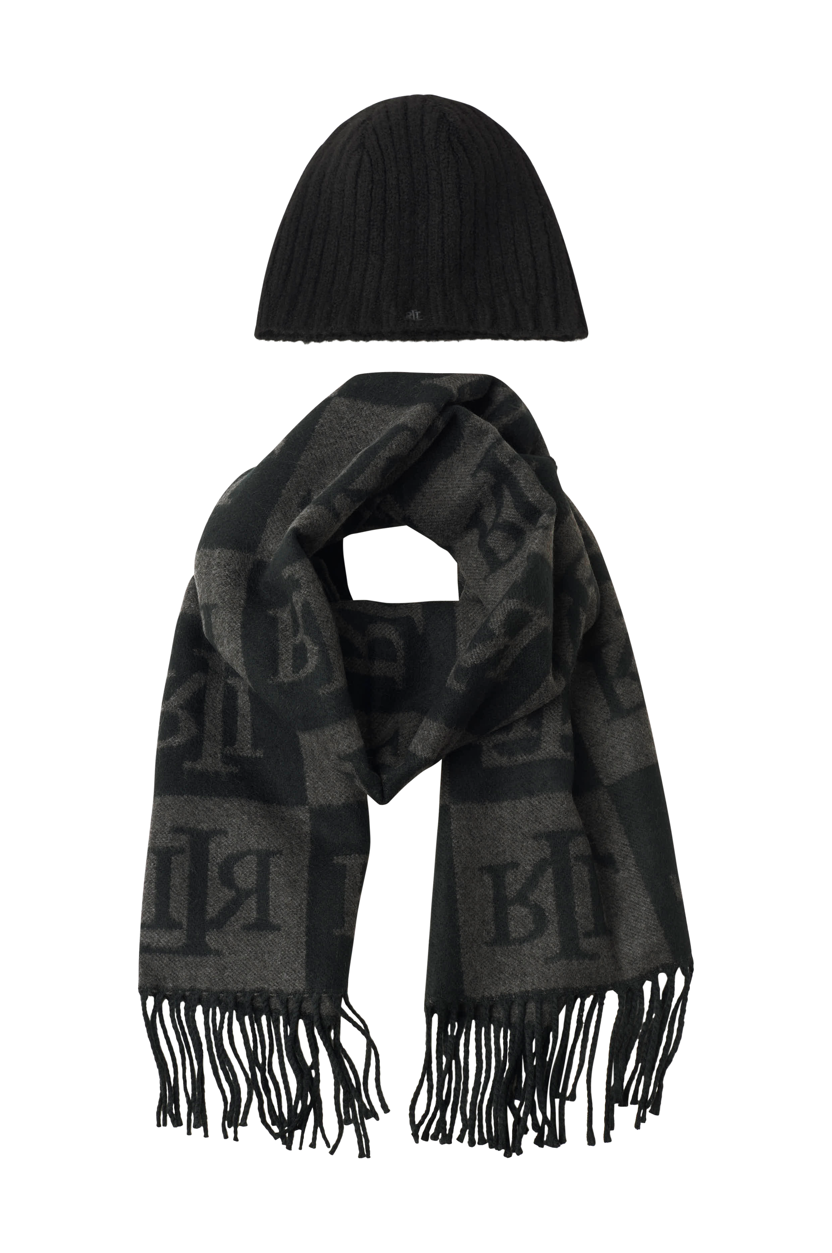 • 2-delt sæt• Ribstrikket hue• Blødt, strikket halstørklæde med frynser på de korte sider• Mål: 44x164 cm