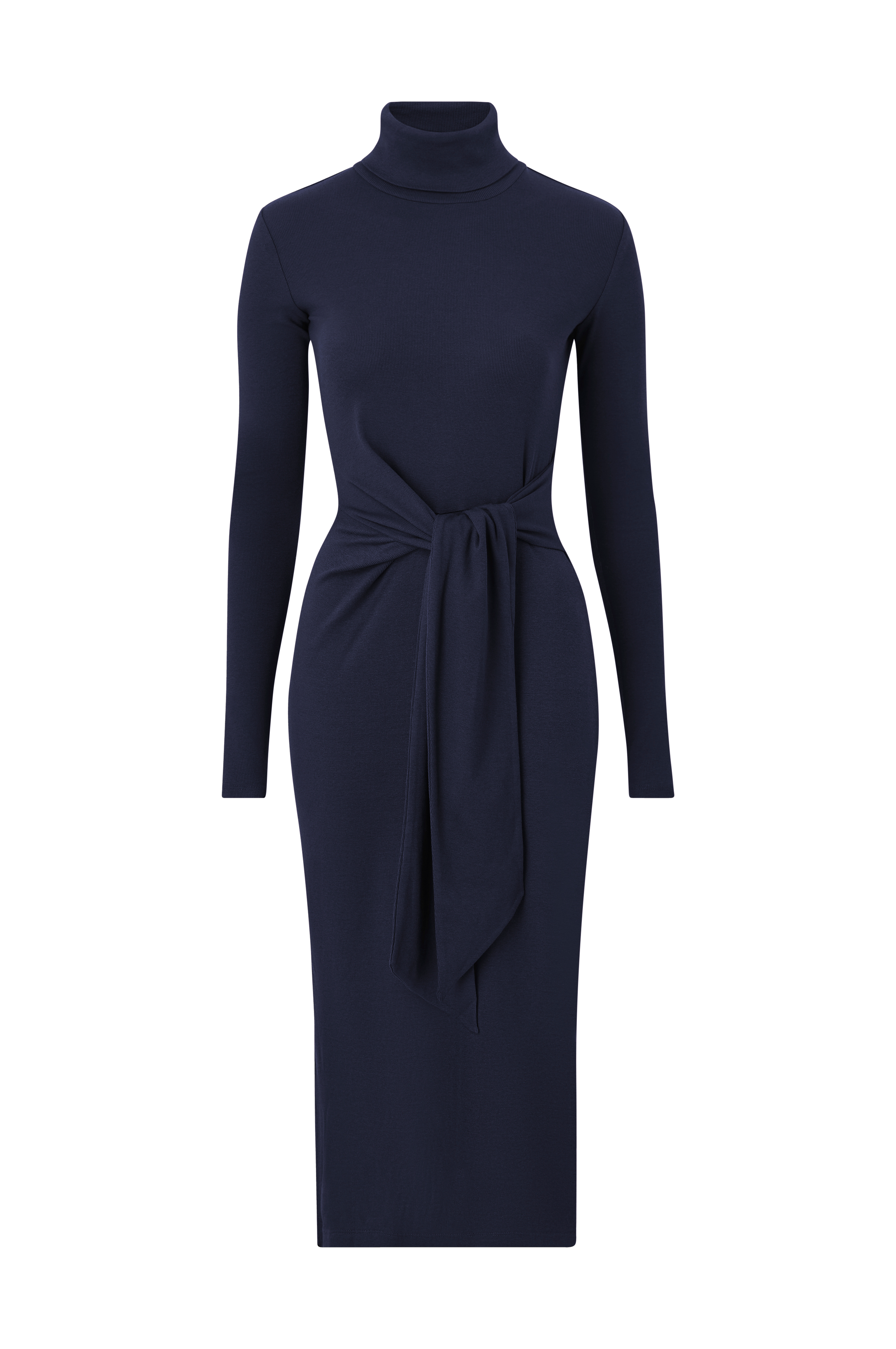 • Lang, figurformede model• Defineret talje med bredt, syet bindebælte i siderne• Høj turtleneck• Langt ærme• Slids nederst i den ene side• Længde: 119 cm i størrelse S