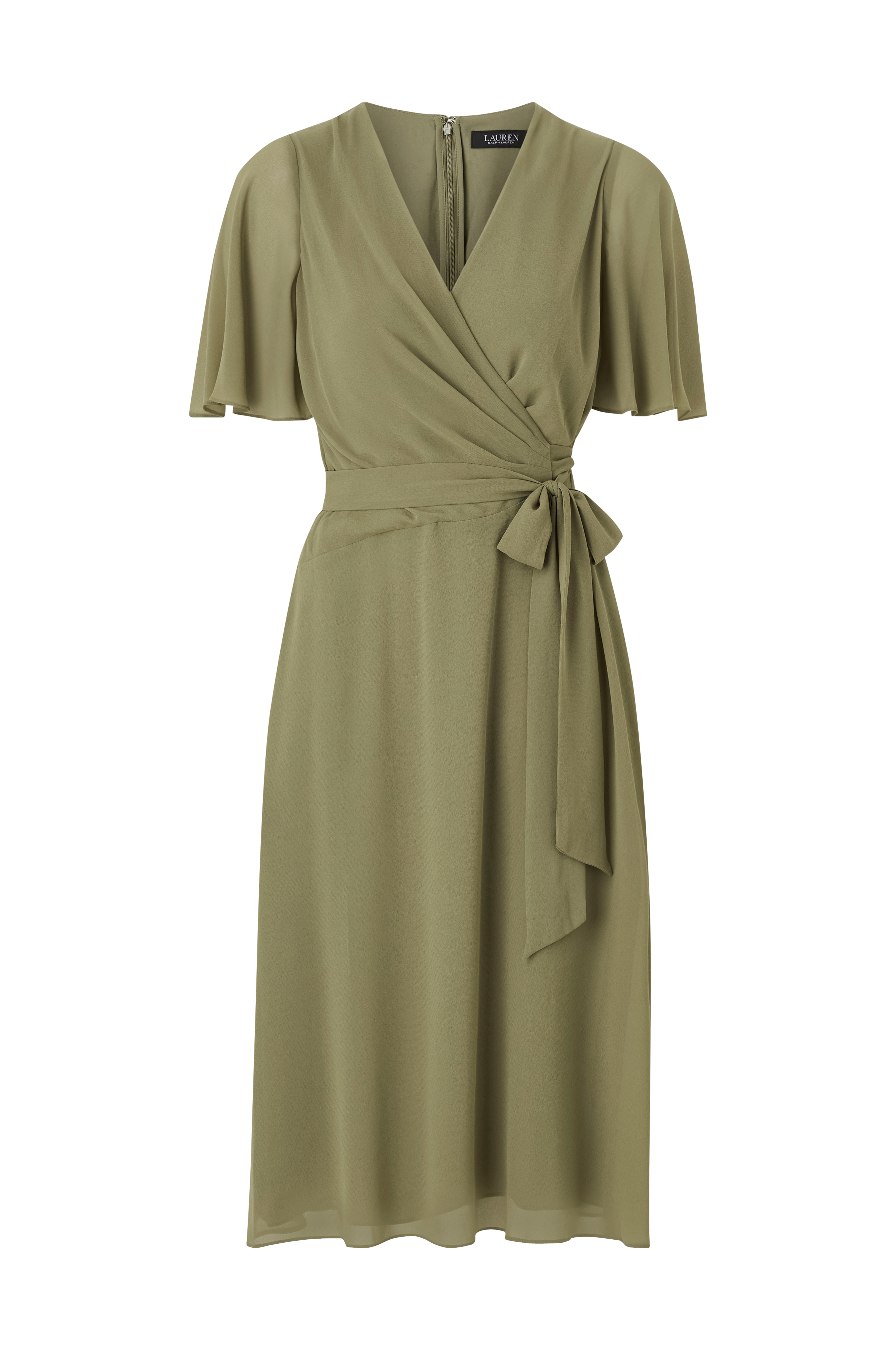 • Kjole i chiffon• Slå-om design på toppen• Korte, transparente sommerfugleærmer• Bindebælte• Skjult lynlås i ryggen• Tyndt for• Længde: 113 cm i størrelse 36