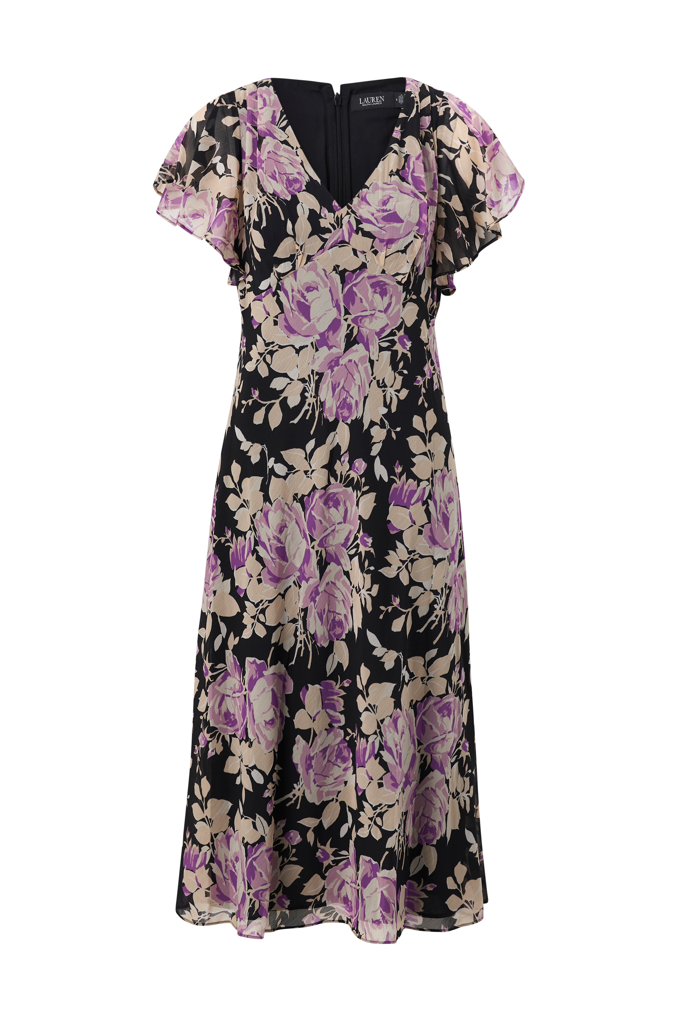 • Korte flagrende ærmer • V-udskæring • Skjult lynlås i ryggen • Fremstillet af chiffon • Foret • Længde: 116 cm i størrelse 36 • Produktet indeholder genindvundet materiale, som genbruges for at reducere mængden af affald samtidigt med at der ikke anvendes nye ressourcer.
