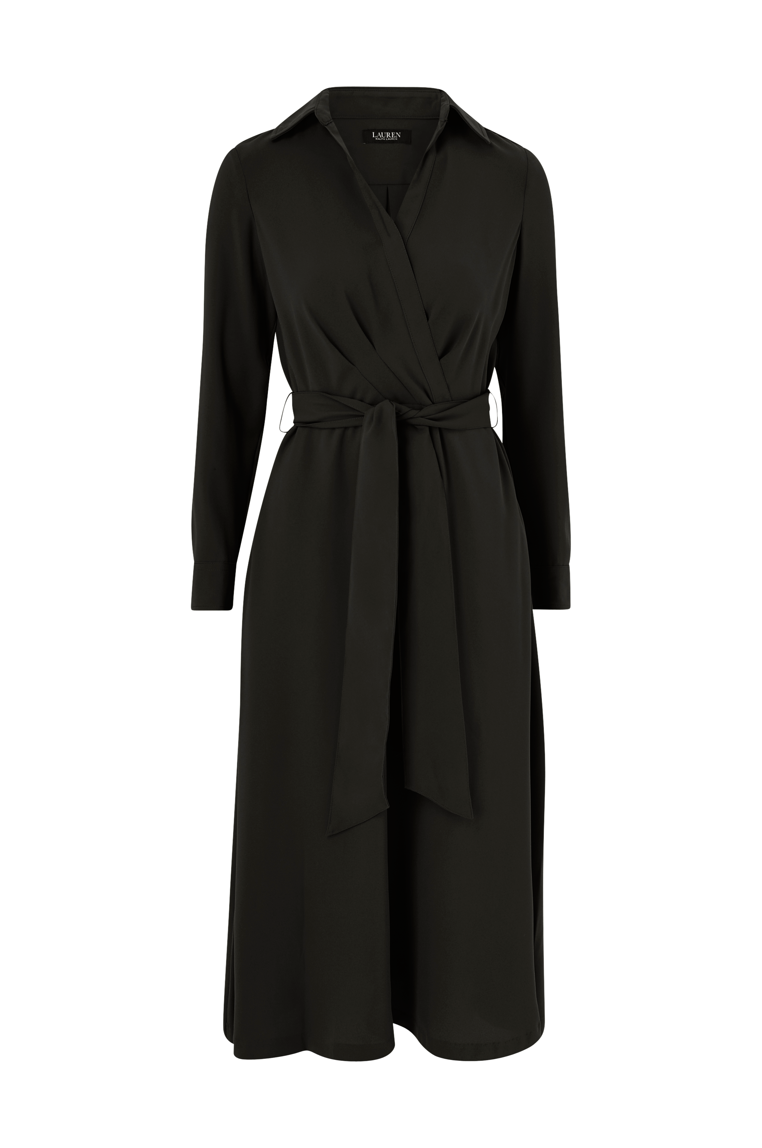 • Slå-om design oppe foran med drapering• V-formet halsudskæring med hægtelukning• Lange ærmer med knap ved manchetterne• Plisseret design bagpå• Aftageligt bæltespænde ved taljen• Længde: 122 cm i størrelse 36