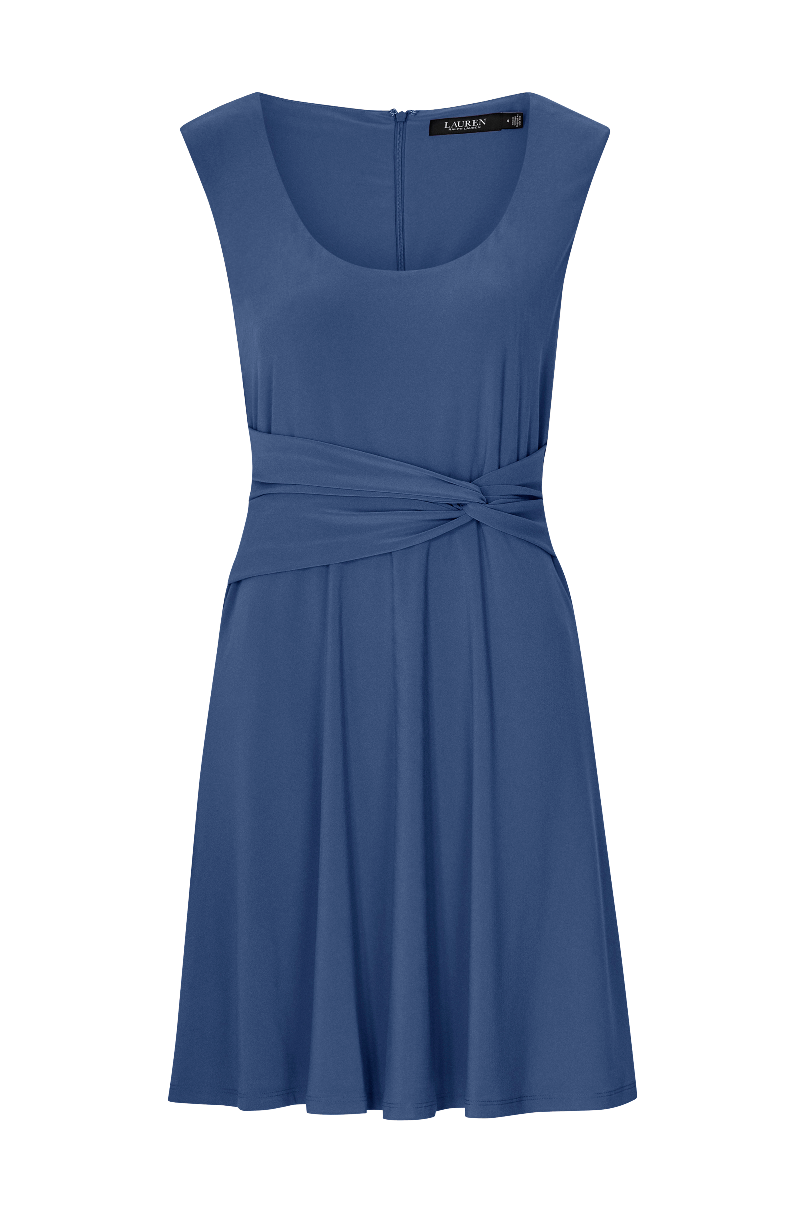 • Jersey med stræk• Ærmeløs model• Rund halsudskæring• Skjult lynlås bagpå• Draperet detalje med knude foran• Trikotfor• Længde: 96 cm i størrelse 36
