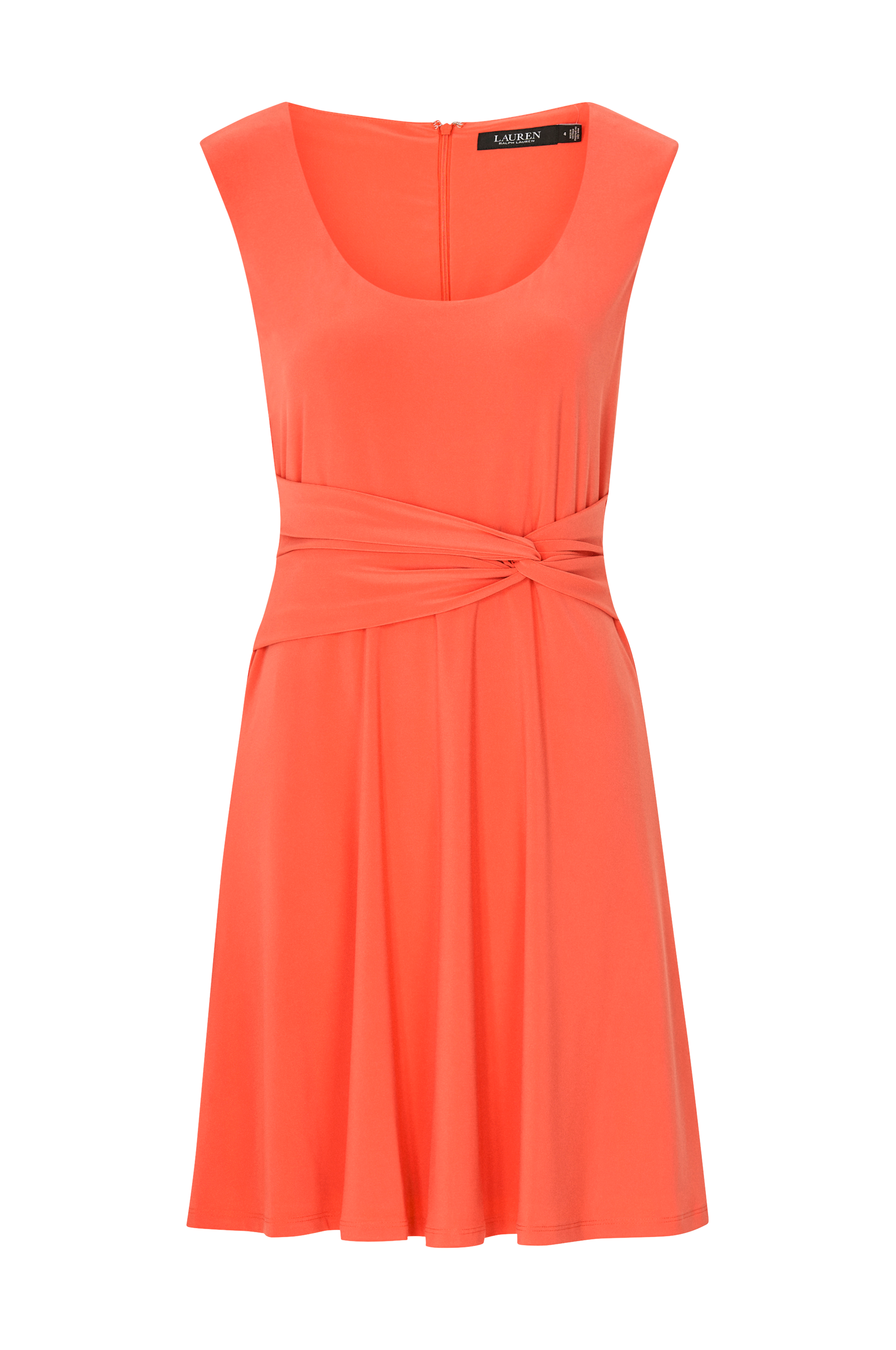• Jersey med stræk• Ærmeløs model• Rund halsudskæring• Skjult lynlås bagpå• Draperet detalje med knude foran• Trikotfor• Længde: 96 cm i størrelse 36