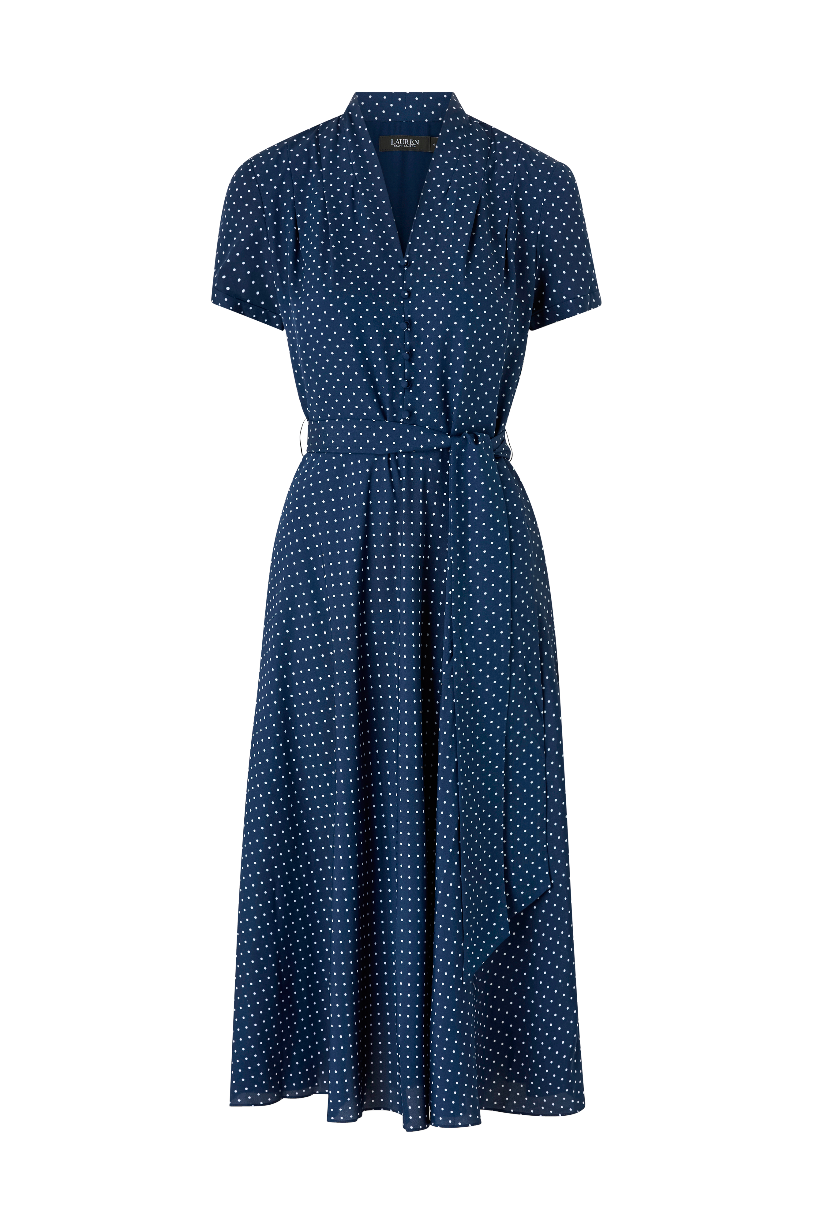 • Mønstret kjole med bindebånd• V-udskæring• Korte ærmer• Knaplukning foran oppe foran• Skjult lynlås i den ene side• Længde: 122 cm i størrelse 36