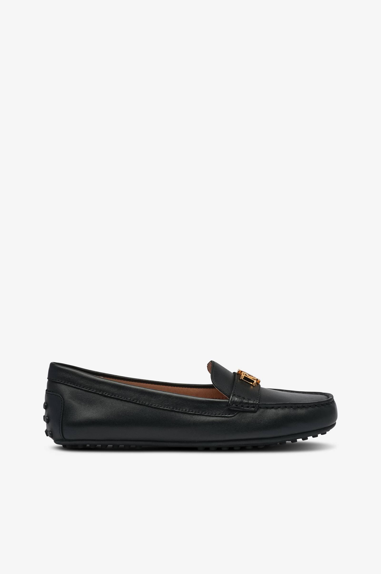 • Øvredel i læder• Guldfarvet metallogo foran• Inderfor i læder• Ydersål i gummi