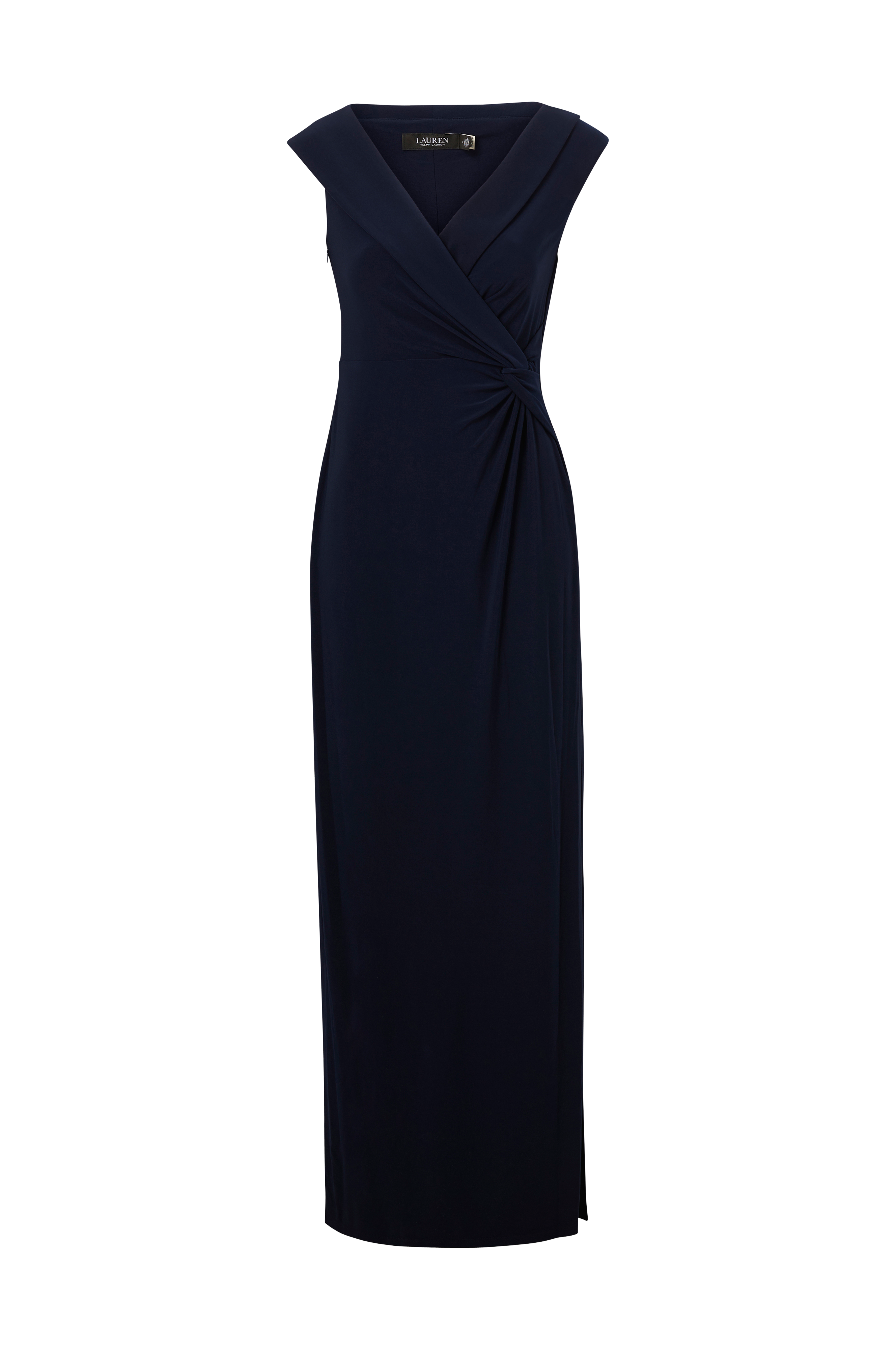 • Lang festkjole• Elegant, stilrent design• Figursyet pasform• V-udskæring med slå-om og volant• Høj slids i den ene side• Skjult lynlås i siden• Fremstillet af dejligt jersey• Foret• Længde: 150 cm i størrelse 36