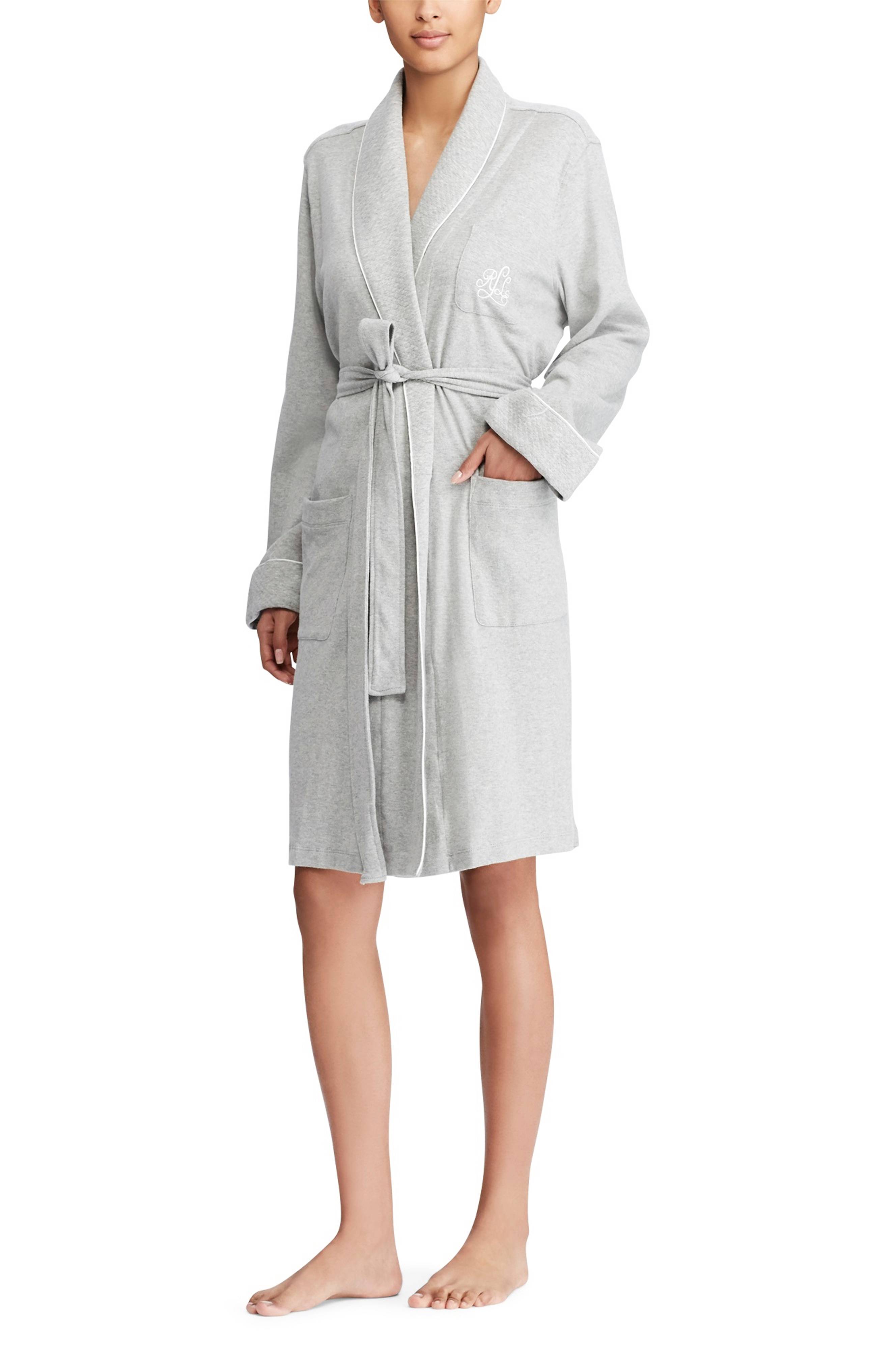 Morgenkåbe LRL Essential Quilted Collar Robe fra Ralph Lauren i blød og skøn bomuldsjersey med strukturmønstret krave og ærmekant. Brystlomme med broderet logo. To lommer foran.