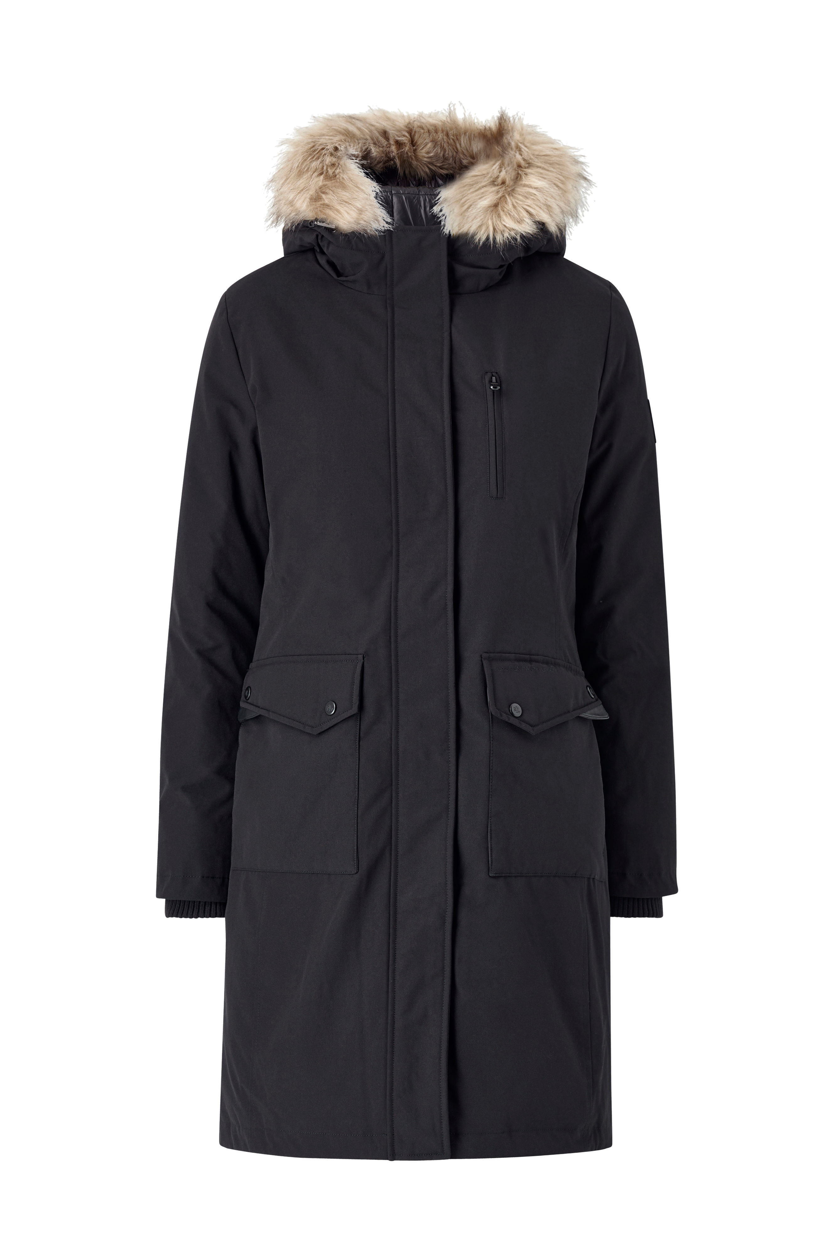 • Foret, varm parka• Lynlås• Vindflap med trykknapper foran• Fem lommer foran• Skjult ribmanchet ved manchetterne• Hætte med træksnørre• Længde: 91 cm i størrelse S