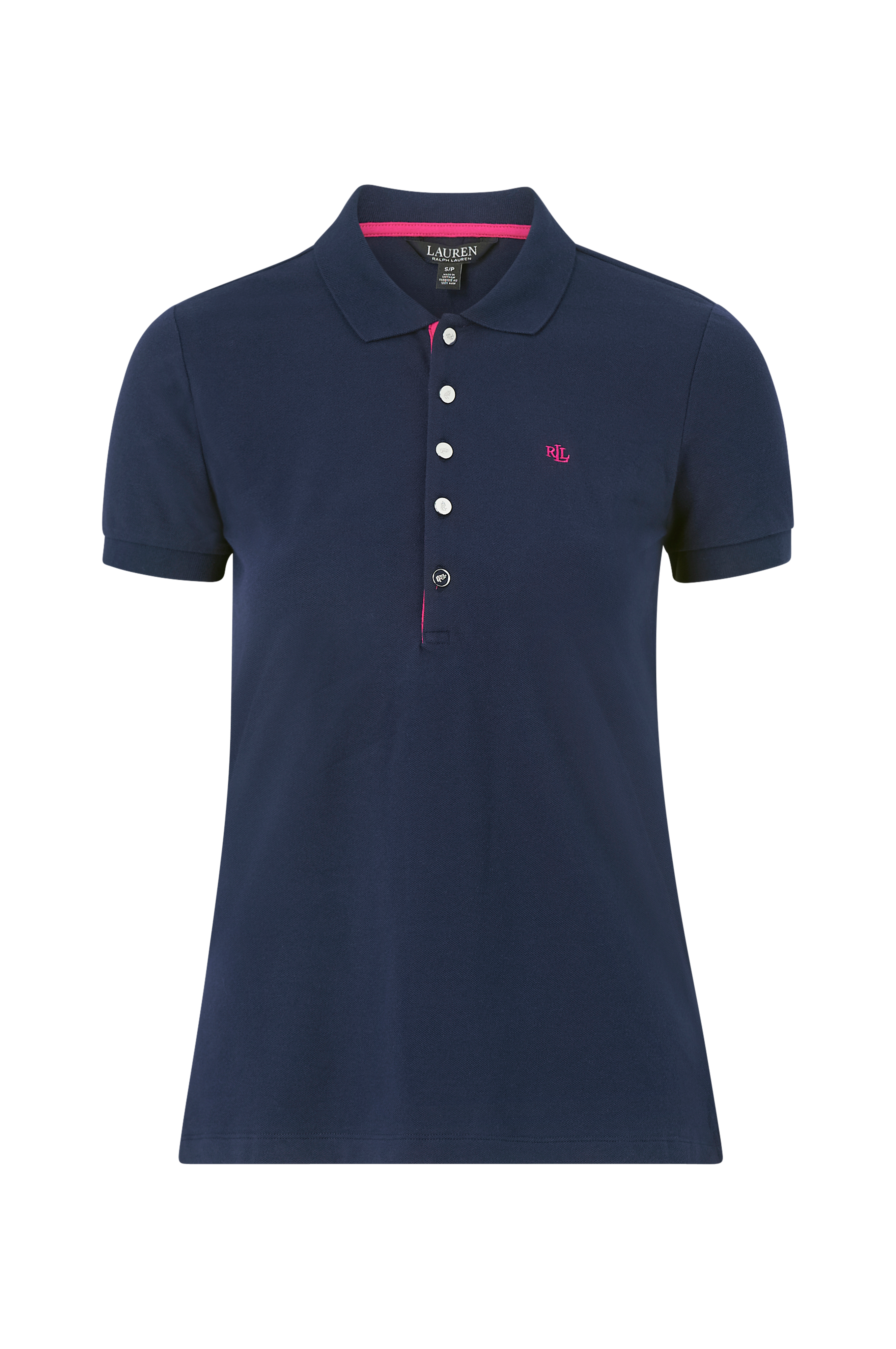 Poloshirt i bomuldsjersey med stretch. Krave i rib og kanter i rib i ærmekant. Flad, guldfarvede metalknapper med præget logo. Lille broderet logo på brystet og slids forneden i siderne.